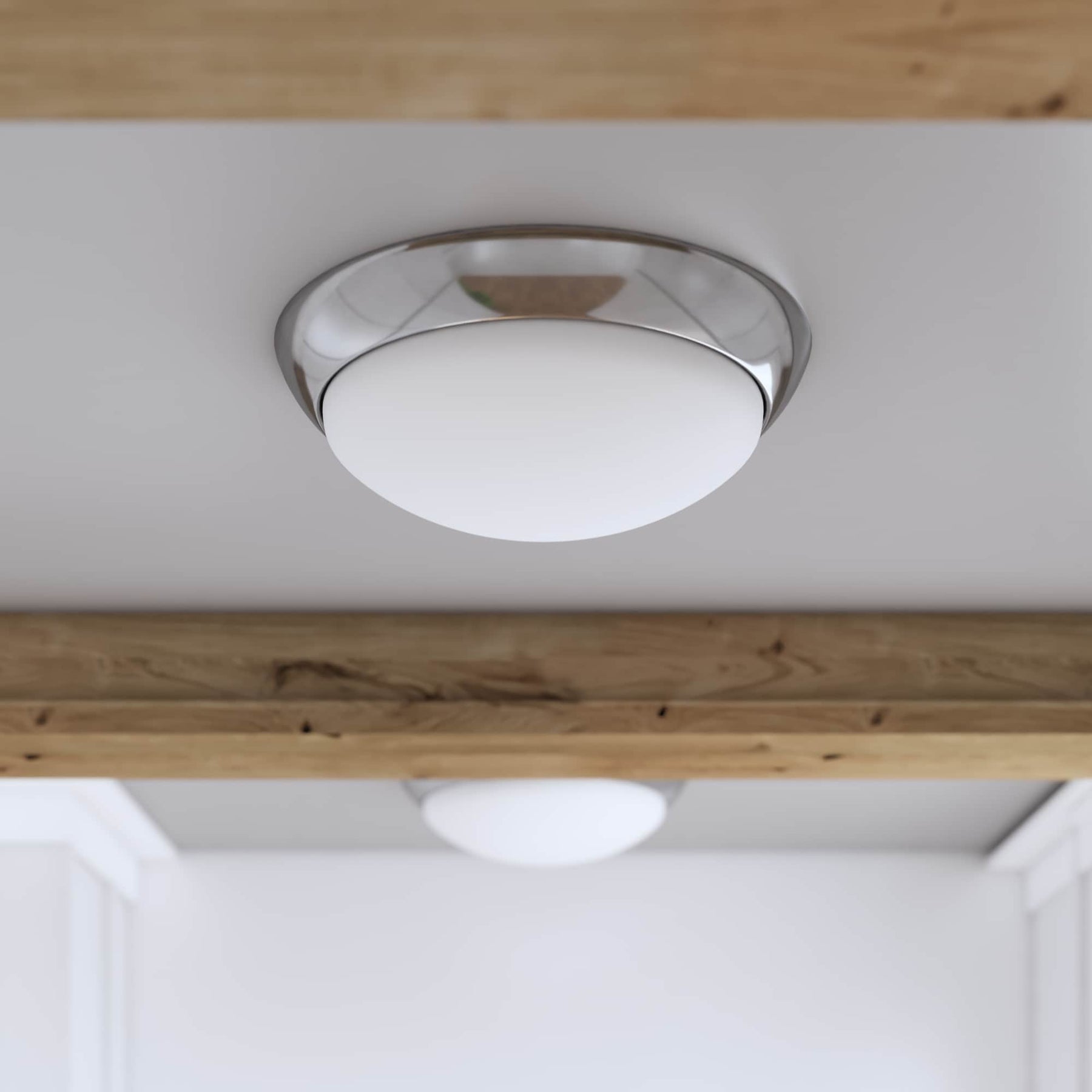 These brushed nickel flush mounts bring a soft, tailored polish to any corridor or kitchen, casting a warm, flattering light through frosted glass. I love the smooth, rounded silhouette—it feels timeless and refined without trying too hard. Pair them in a hallway to create a rhythmic glow or layer them with pendants over an island for dimension. Consider them a chic essential that elevates everyday spaces with effortless luxury.
