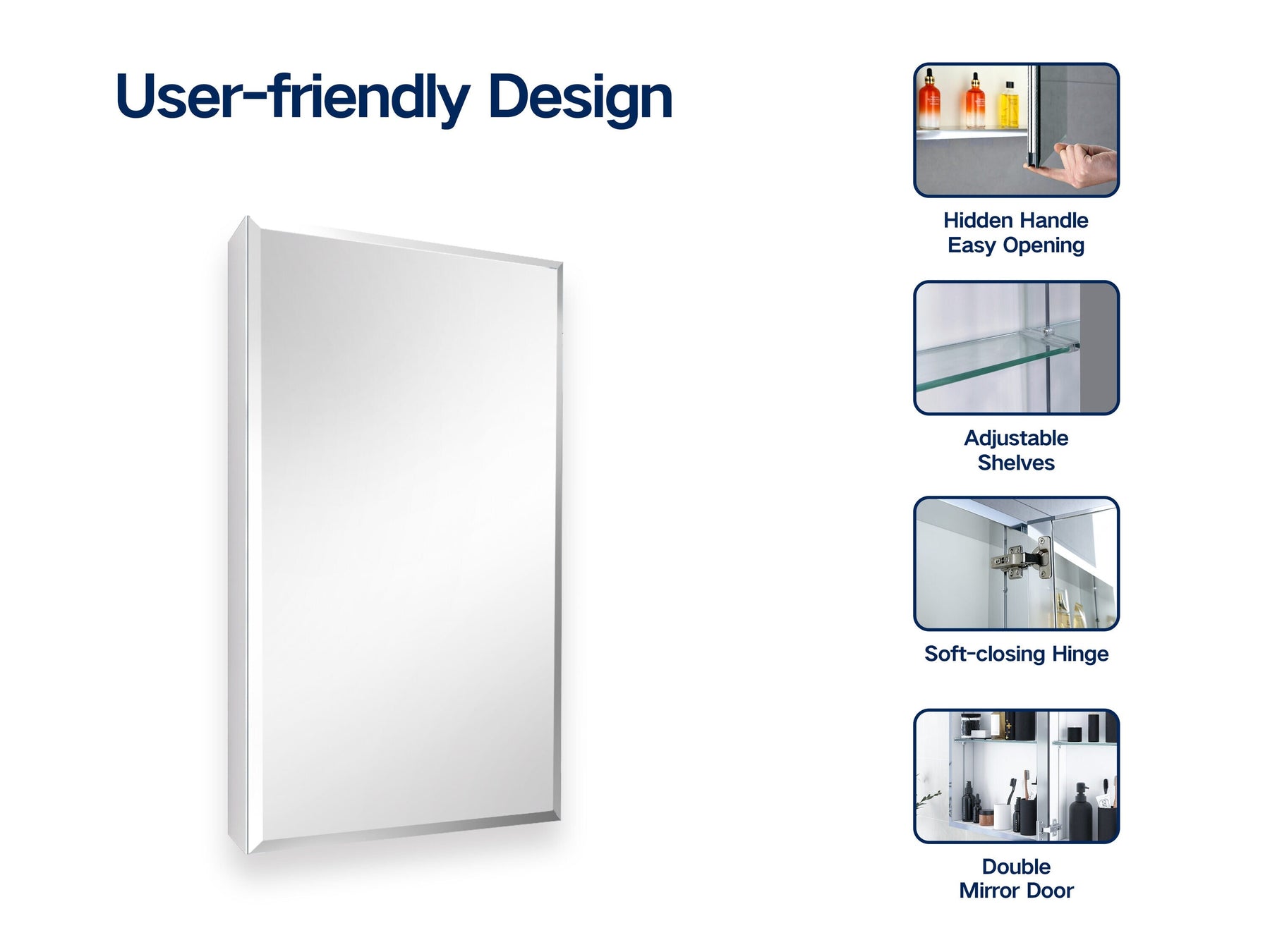 Forclover 15-in x 26-in Surface/Recessed Mount Silver Mirrored Medicine Cabinet