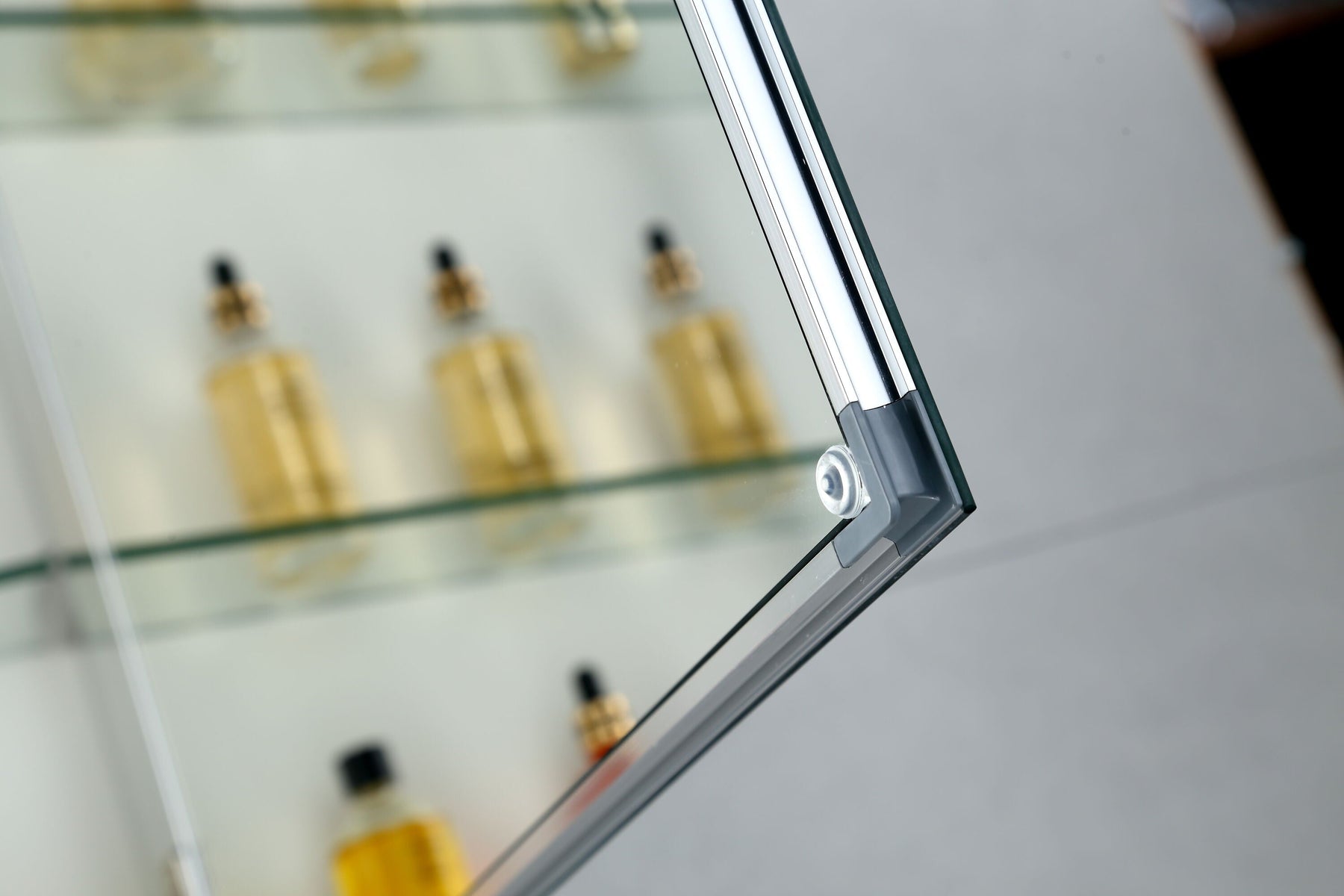 - Adjustable Tempered Glass Shelves: Customizable shelving made from strong and safe 7mm tempered glass.