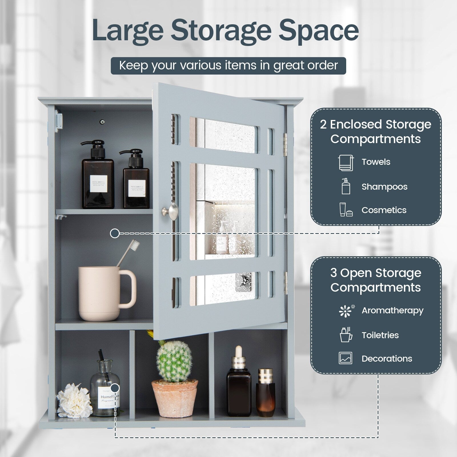 Forclover 19-in x 23.5-in Medicine Cabinet Bathroom Storage Wall Cabinet with Mirror in Gray