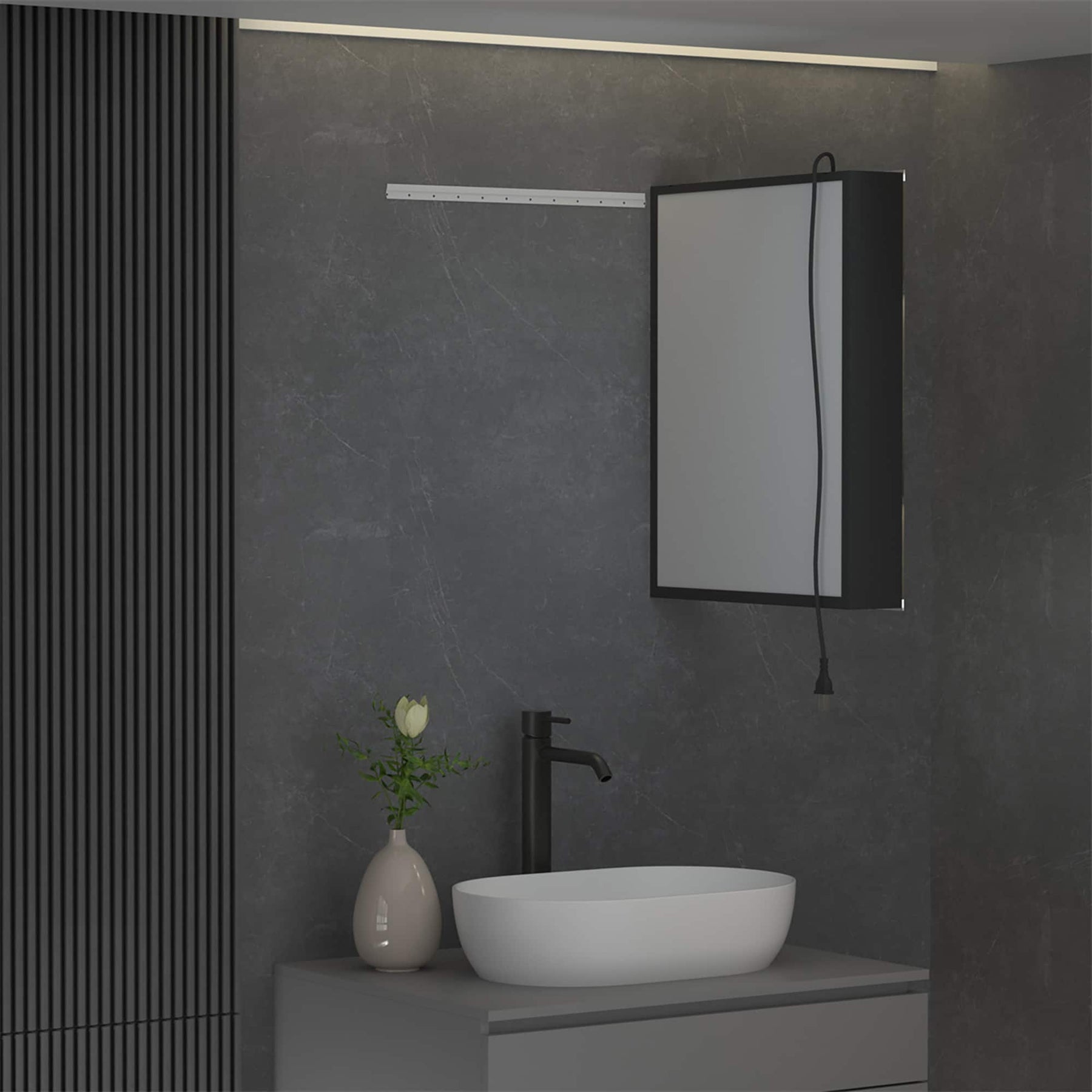 - Frameless Design: Sleek aluminum frame with a double-sided mirrored door for a minimalist look.