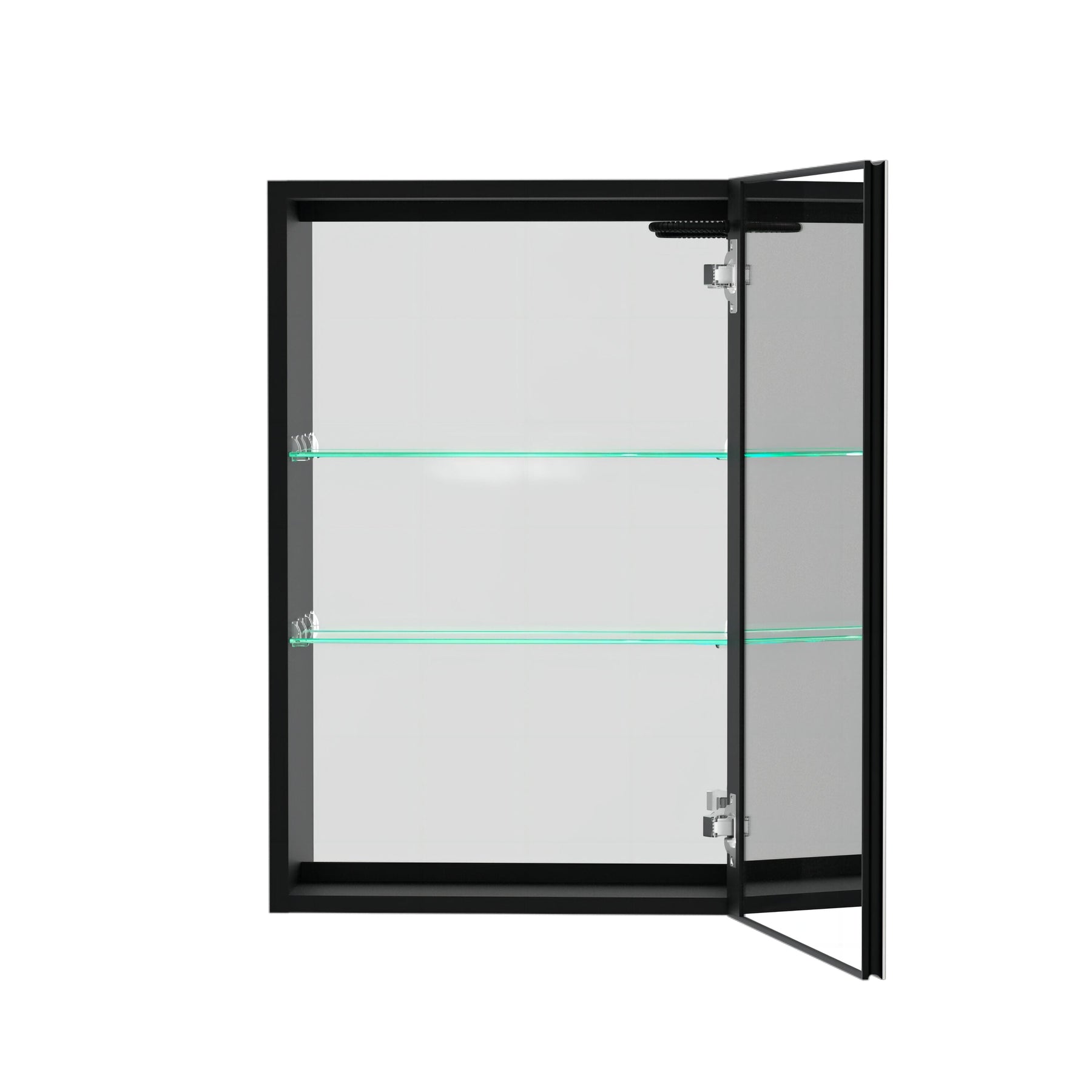 Experience the sublime marriage of form and function with this exquisite LED medicine cabinet. Its sleek black finish and fog-free mirror surface transform any bathroom into a serene retreat. With adjustable shelves and soft-close doors, this piece not only offers ample storage but also evokes a sense of modern sophistication. Elevate your morning rituals with this essential addition to your luxe lifestyle, providing both clarity and convenience to your day-to-day.