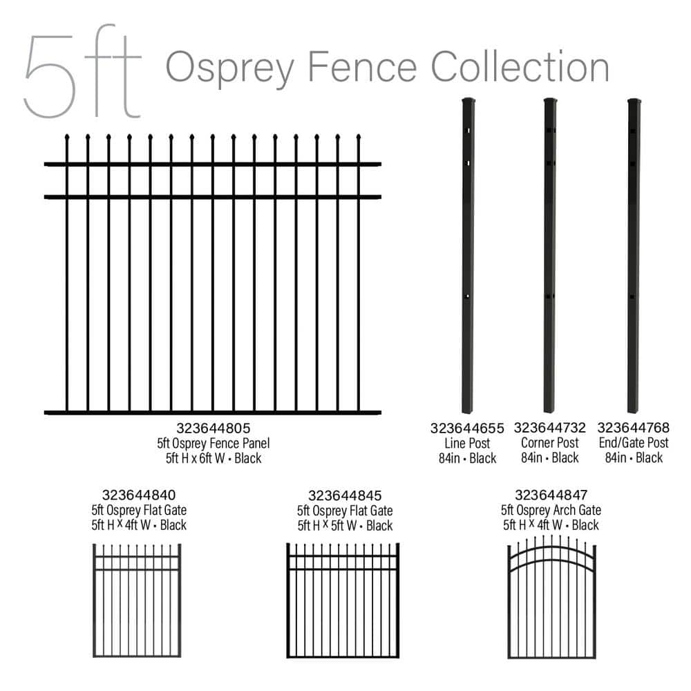 Osprey 5 ft. Black Aluminum Fence Panel (5-pack)