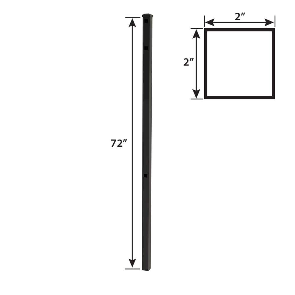 FORGERIGHT Vinings 2 in. x 2 in. x 6 ft. Black Aluminum Fence End/Gate Post with Flat Cap