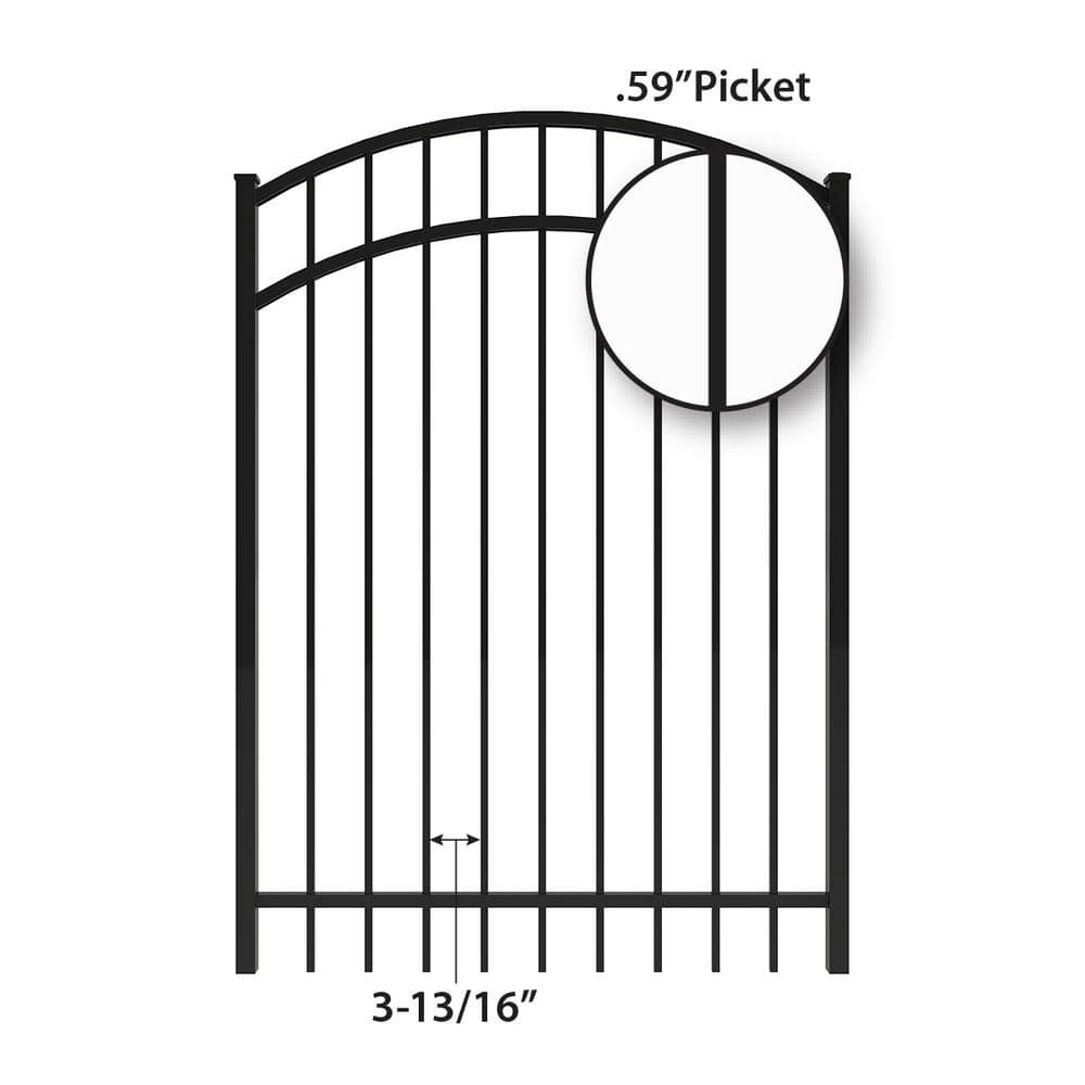 FORGERIGHT Vinings 4 ft. W x 5 ft. H Black Aluminum Arched Pre-Assembled Fence Gate