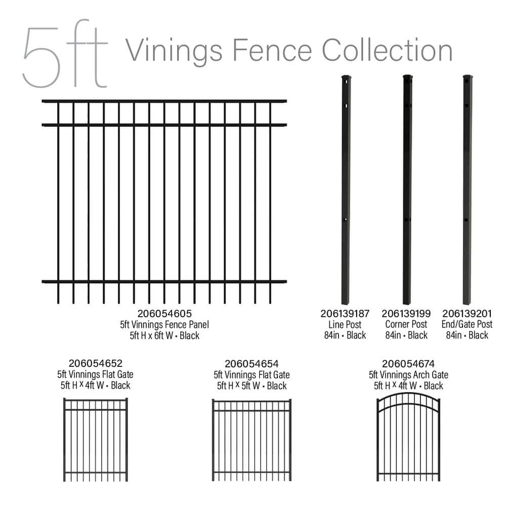 FORGERIGHT Vinings 5 ft. H x 6 ft. W Black Aluminum Pre-Assembled Spaced Bar Flat Framed Metal Fence Panel (5-Pack)