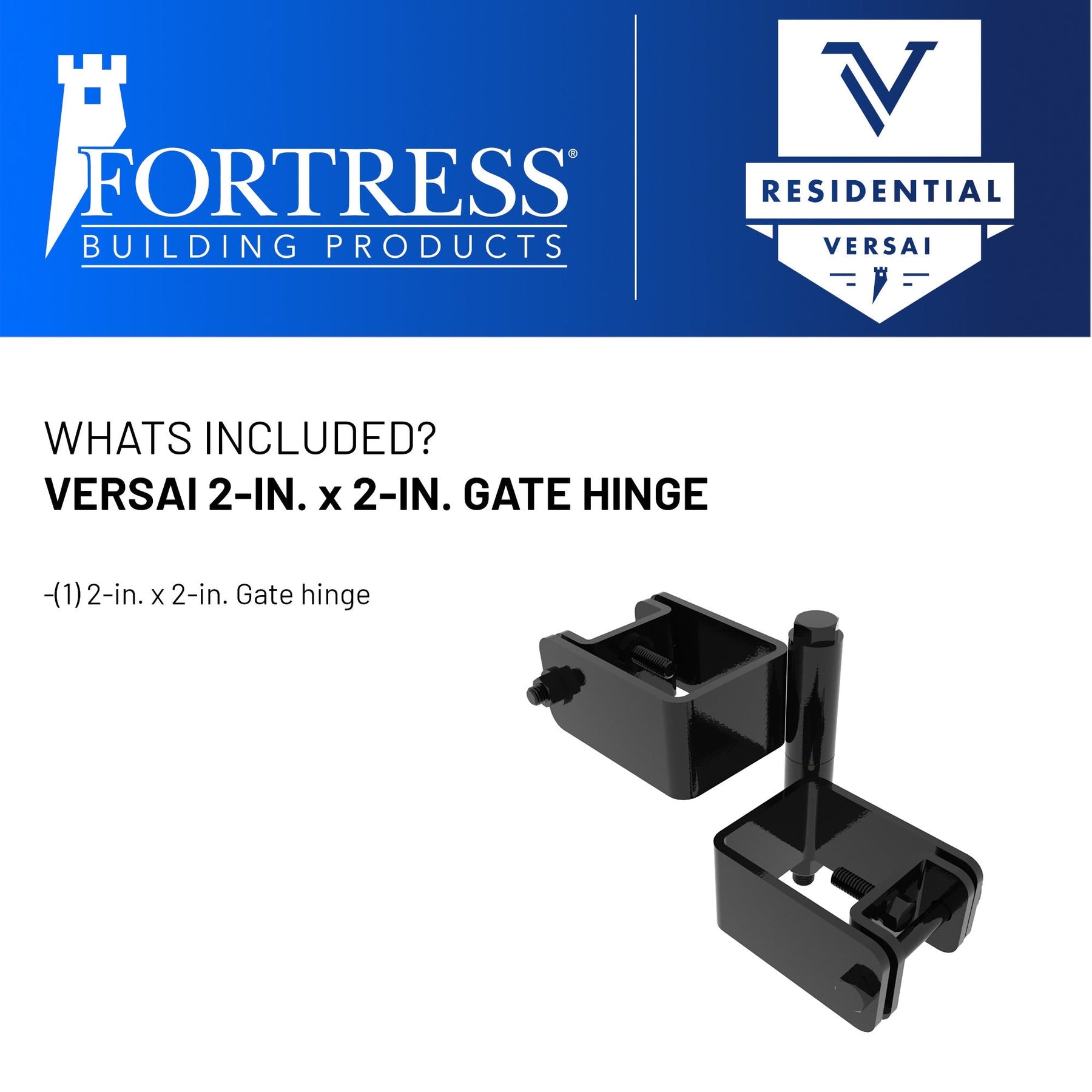 Fortress Building Products Versai 2-in x 2-in Gloss Black Steel Fence Gate Hinge for Drive Gate Pair