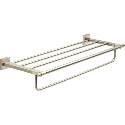 Gorgeous Satin Nickel finish Accomplish a relaxed, spa like bathroom with casual bath hardware accessories Wall-mount towel shelf design for easy bathroom organization Set Screw installation for easy mounting Mounting hardware and easy to use template included Confidently backed by Limited Lifetime Warranty Constructed from zinc die cast for lasting quality