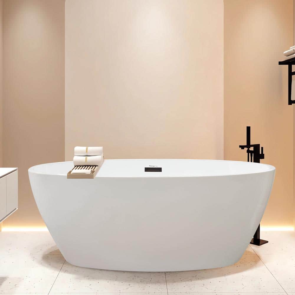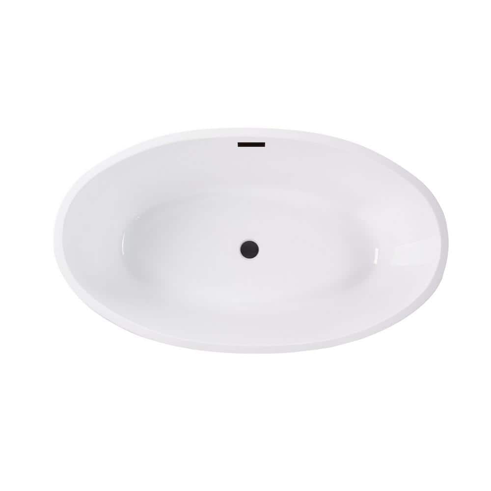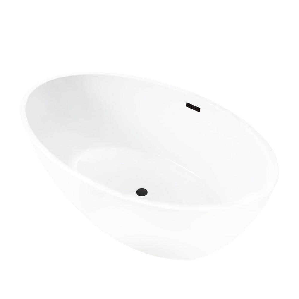 The Vanity Art Amiens freestanding soaking tub combines 100% acrylic construction with a smooth, high-gloss white finish for lasting durability and easy cleaning. Its contemporary oval silhouette with center drain and oil-rubbed bronze trim delivers spa-like comfort and a striking focal point for modern bathrooms.