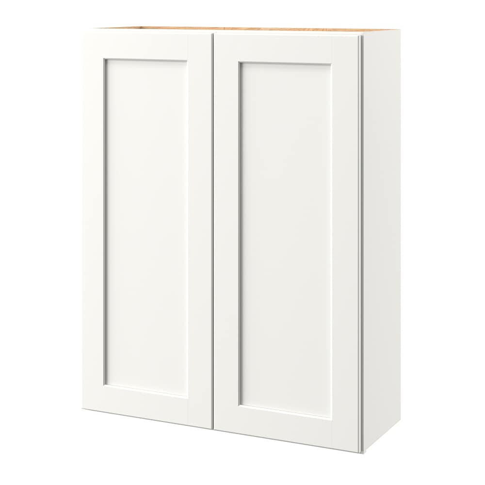 The allen + roth Aveley Linen Wall Cabinet offers a seamless blend of traditional craftsmanship and modern design with its flat panel Shaker doors and soft-close technology. Constructed with durable hardwoods and engineered materials, this cabinet offers both aesthetic appeal and reliable storage for any room.