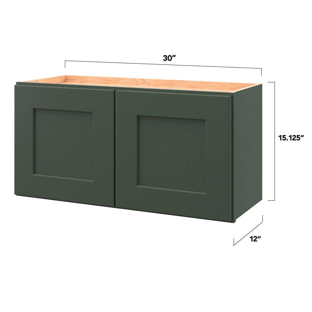 allen + roth Galway 30-in W x 15.125-in H x 12-in D Sage Wall Fully Assembled Cabinet (Flat Panel Shaker Door Style)