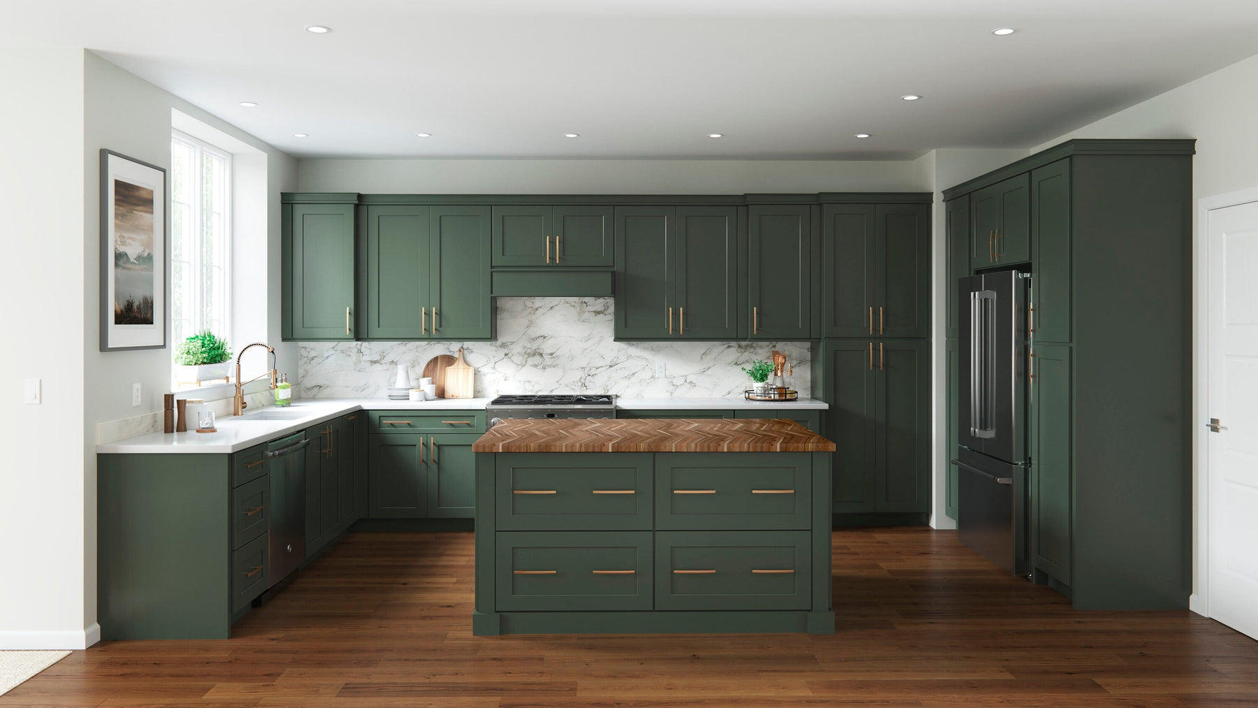 • Dovetail Drawers: Full-access hidden glides manage heavy loads comfortably.