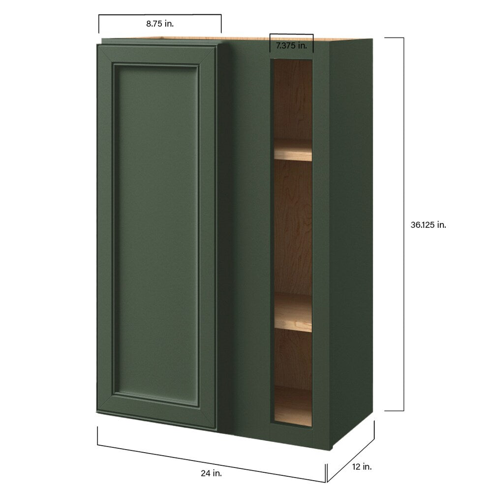 Elevate your kitchen or living space with the Heathrow Sage Blind Corner Wall Cabinet by allen + roth. Featuring a sleek recessed panel square design, this fully assembled cabinet offers soft-close functionality and superior construction for a seamless blend of style and practicality.