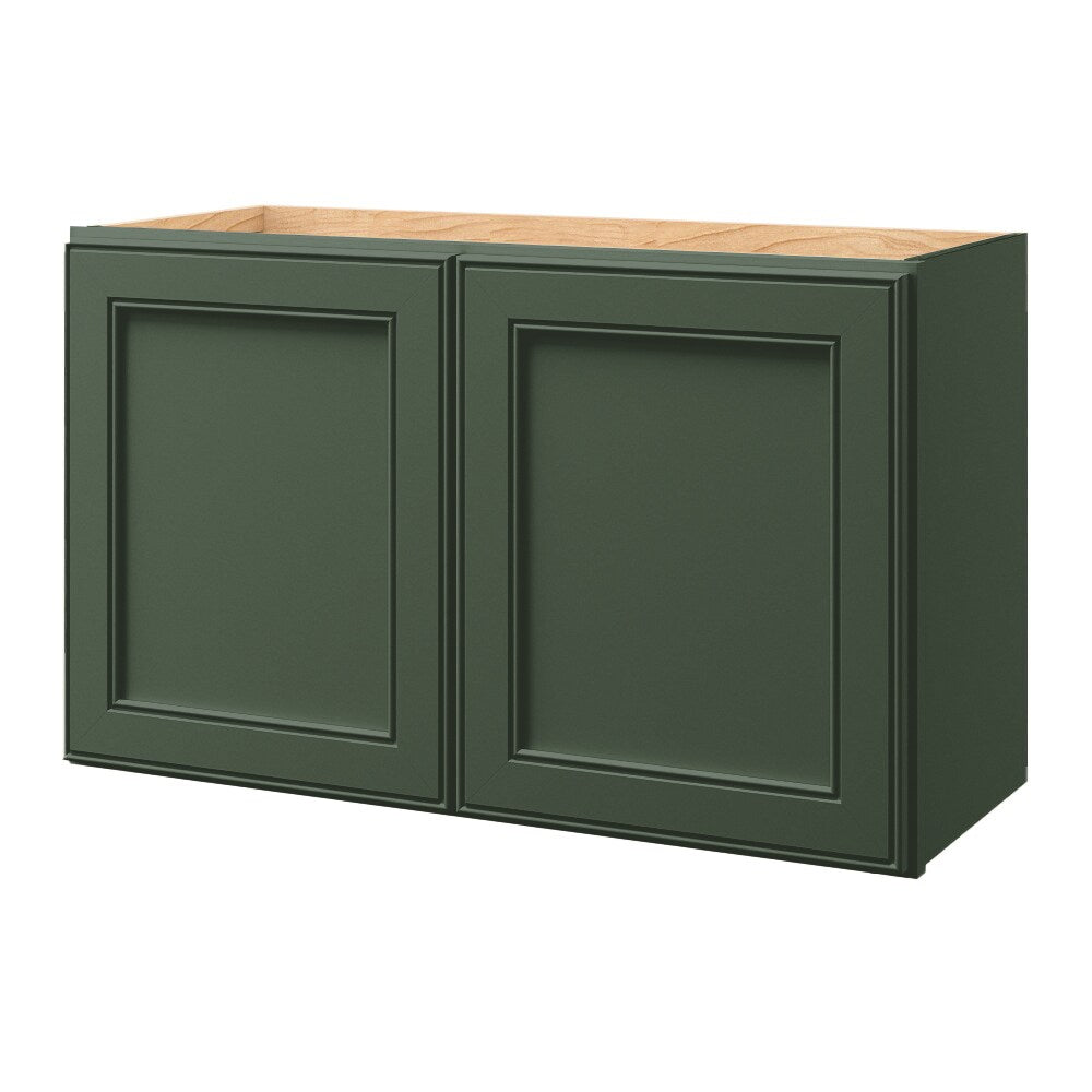Enhance your space with the allen + roth Heathrow Wall Cabinet in a soothing Sage finish. This elegantly crafted, fully assembled cabinet combines transitional style with the durability of mixed-material construction. Its soft-close doors and seamless design make it the perfect blend of beauty and functionality for any kitchen or bathroom project.
