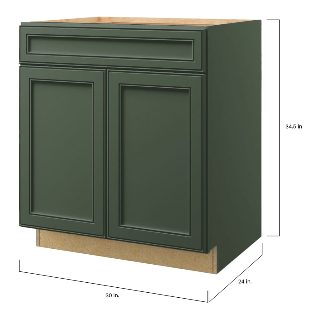 allen + roth Heathrow 30-in W x 34.5-in H x 24-in D Sage Sink Base Fully Assembled Cabinet (Recessed Panel Square Style)