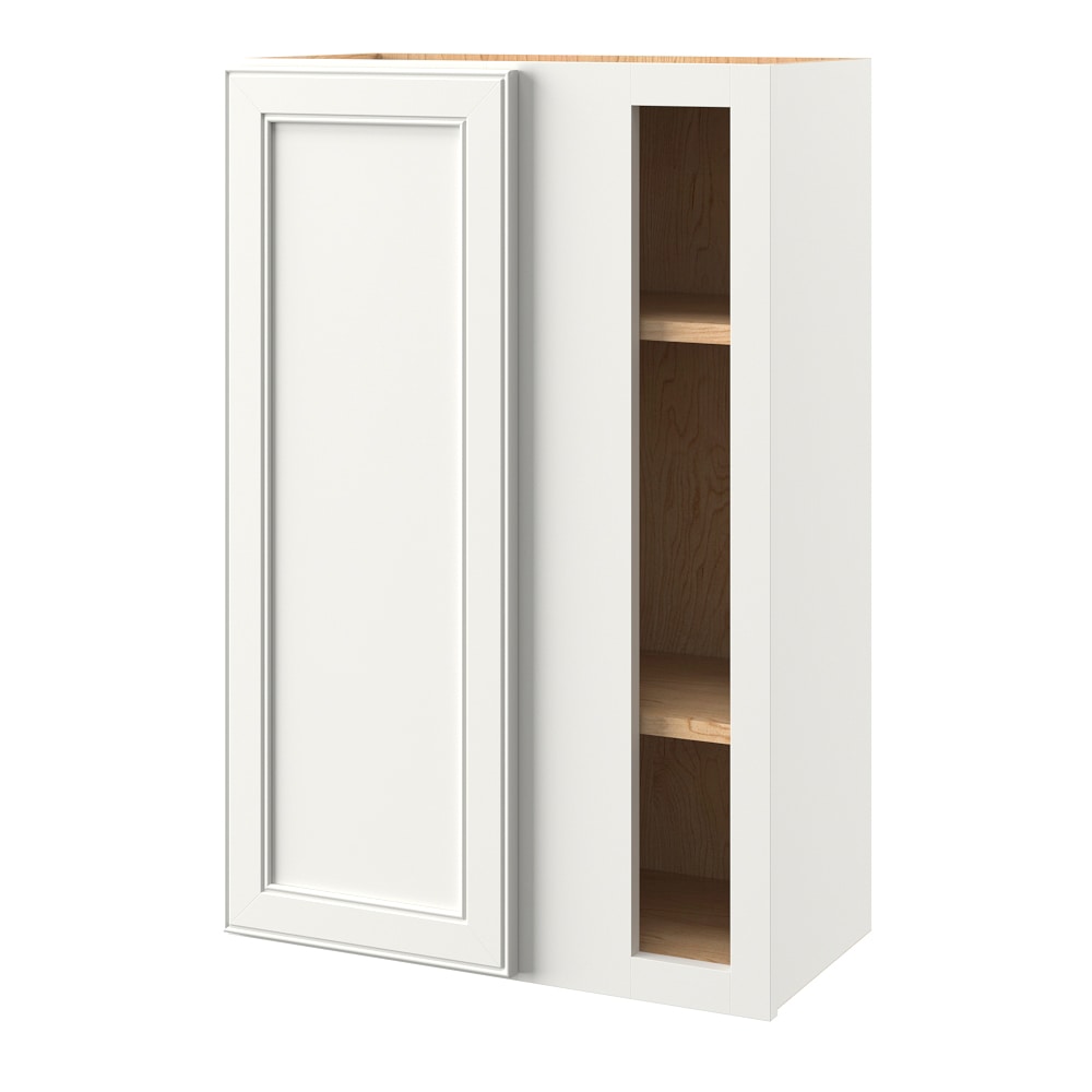 Elevate your kitchen with the allen + roth McKellar Blind Corner Wall Cabinet, featuring a sleek flat panel design and mitered style in a crisp linen finish. Crafted for durability, this cabinet offers soft-close doors and adjustable shelves, ensuring both elegance and functionality in modern homes.