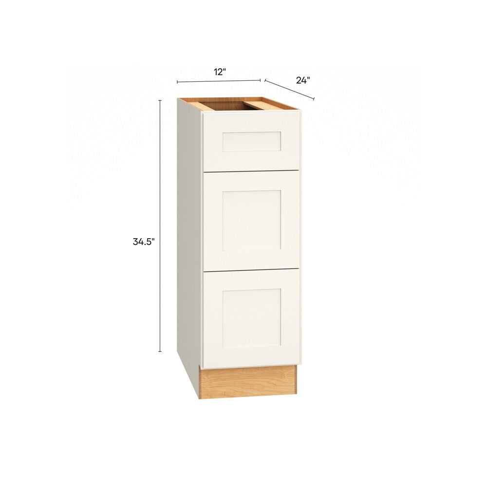 Diamond Express Jamestown 12-in W x 34.5-in H x 24-in D White 3-Drawer Base Fully Assembled Plywood Cabinet (Recessed Panel Shaker Style)
