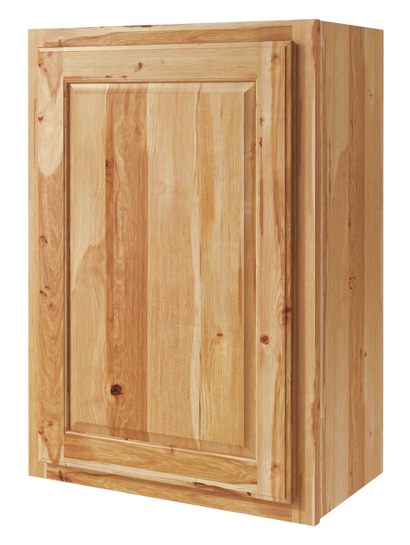 The Denver Rustic Hickory Wall Cabinet transforms any kitchen or living area into a sanctuary of rustic elegance. The natural hickory knots and bold grain patterns exude warmth and authenticity, while the raised panel design and solid wood frame speak to exquisite craftsmanship. Use this cabinet as a stunning focal point in a neutral palette kitchen or as a rustic accent against sleek, modern lines. It's not just a storage solution—it's a statement of luxury and refined living.