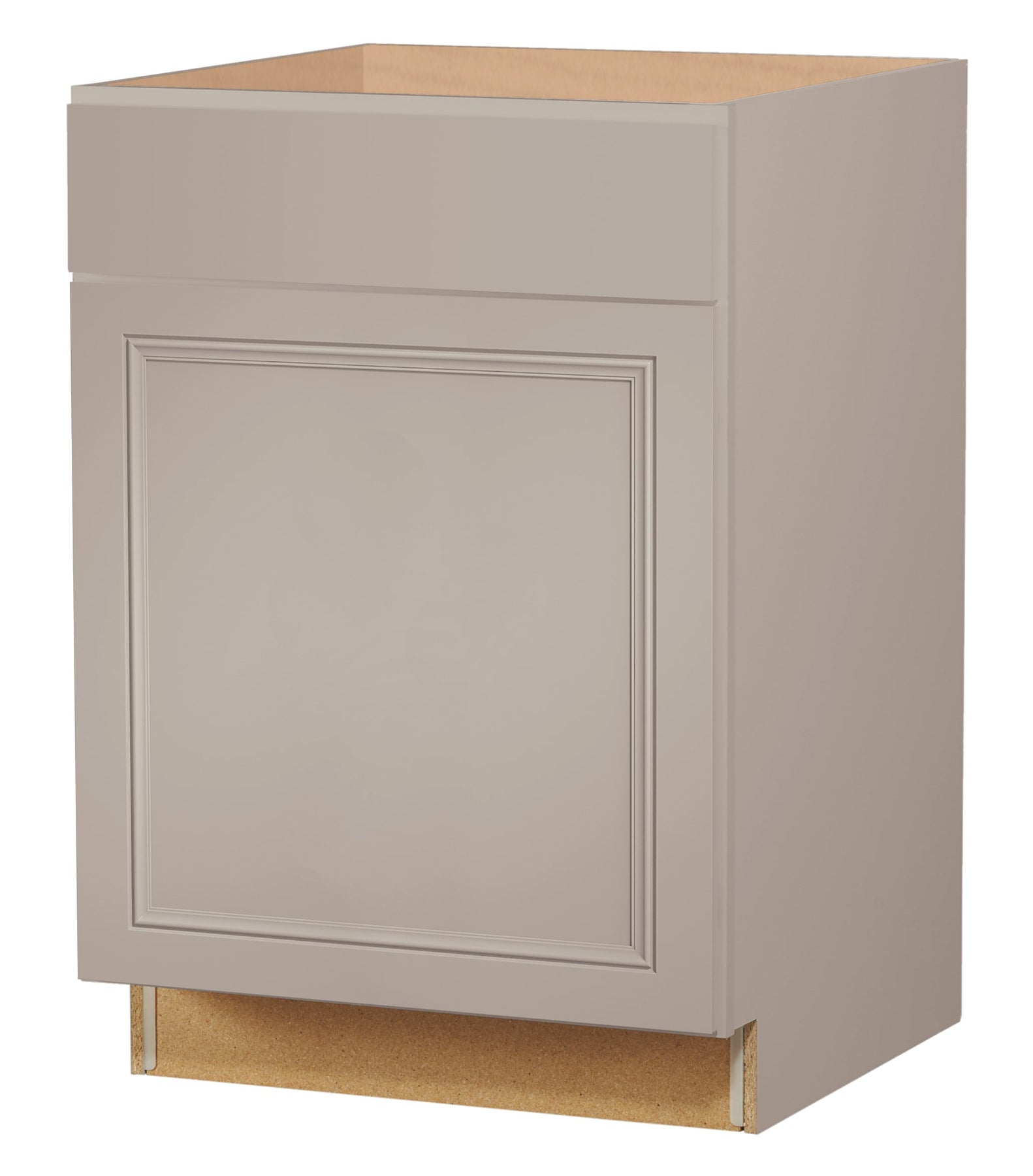 Enhance your kitchen with the fully assembled Wintucket 1-Drawer Base Cabinet, offering a chic, Cloud Gray finish that is both durable and easy to maintain. This cabinet combines modern and transitional styles with its seamless TrueColor™ laminate finish and recessed panel design, providing a clean and sophisticated look.