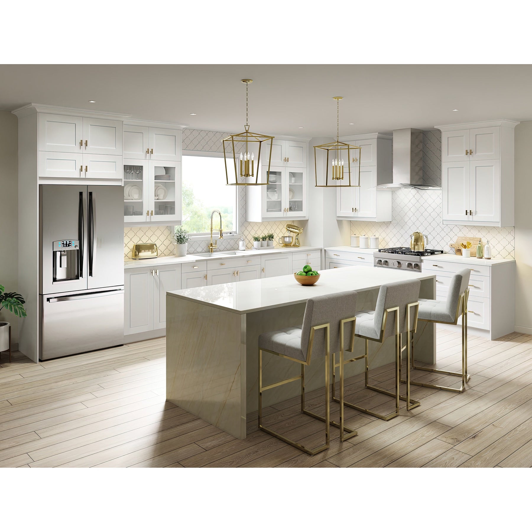 This pull-out base cabinet infuses a sophisticated charm into any kitchen space, embodying a minimalist's dream in warm white. The distinguished recessed panel style draws the eye, while the luxurious linen interior adds an unexpected touch of finesse. Pair with matching cover panels to complete an artfully cohesive look, transforming mundane storage into a captivating staple. This piece is not just a cabinet; it is an essential element of refined living.