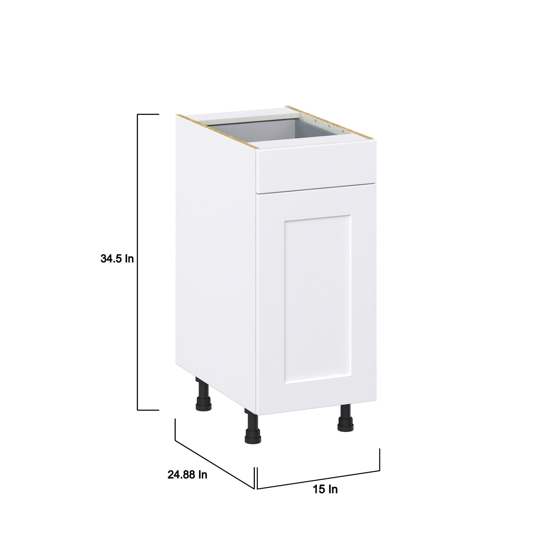 Hugo&Borg 15-in W x 34.5-in H x 24-in D Warm White 1-Drawer Pull-out Cabinet Base Fully Assembled Cabinet (Recessed Panel Style)