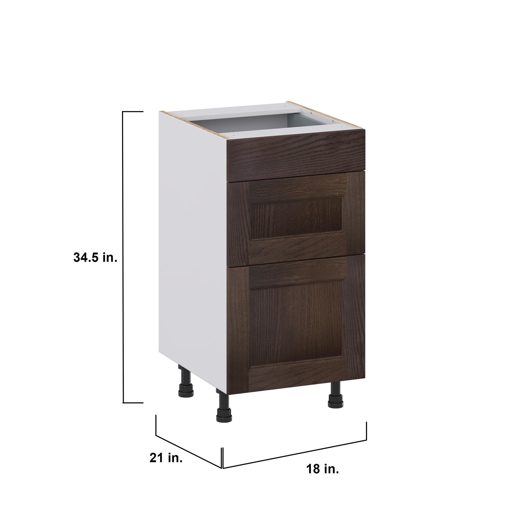 Hugo&Borg 18-in W x 34.5-in H x 21-in D Wood 3-Drawer Base Fully Assembled Cabinet (Recessed Panel Style)