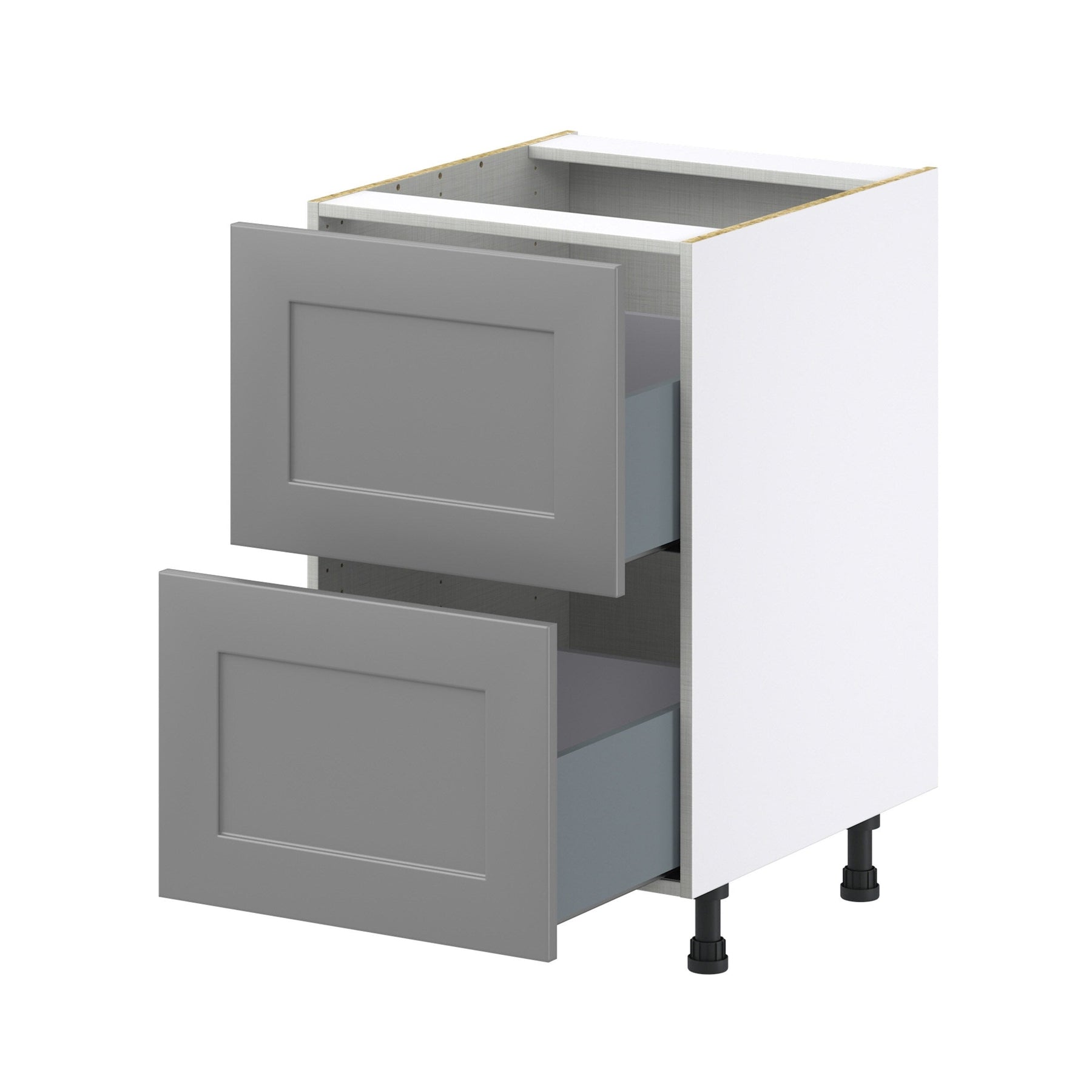 Upgrade your space with the Hugo&Borg Slate Gray 2-Drawer Base Cabinet. Featuring European-style frameless construction, it maximizes storage while providing a sophisticated look. Its fully assembled design and durable finish make it an ideal choice for a quick and stylish update.