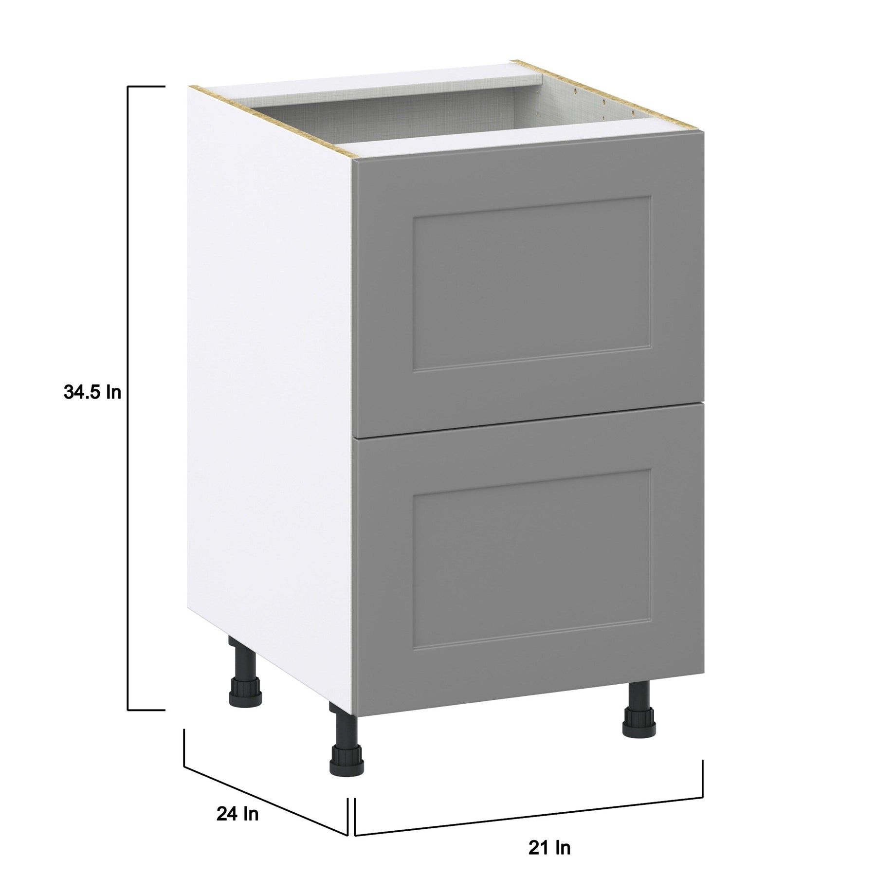 Hugo&Borg 21-in W x 34.5-in H x 24-in D Slate Gray 2-Drawer Base Fully Assembled Cabinet (Recessed Panel Style)