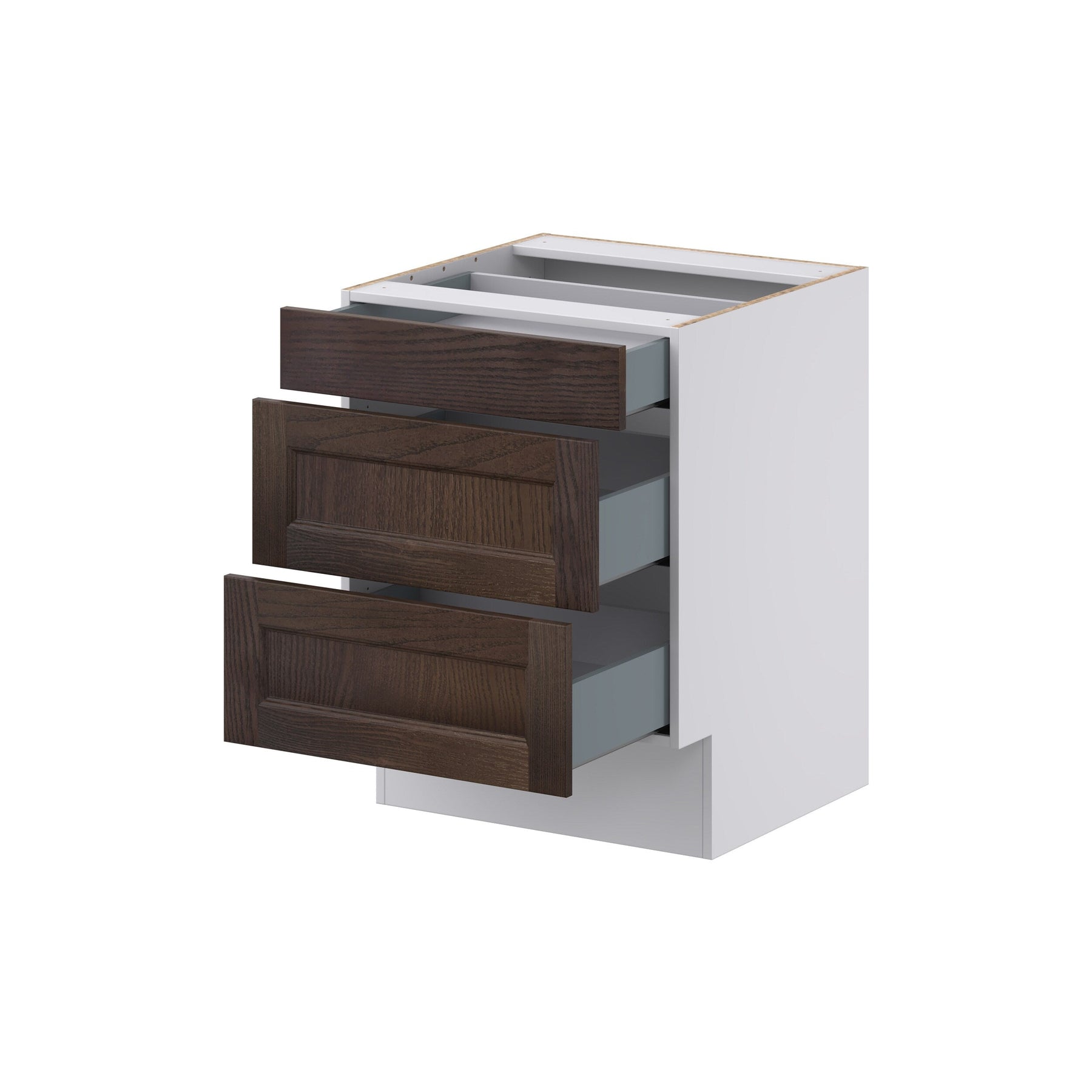 With the Hugo&Borg Wood 3-Drawer Base Cabinet, sophistication seamlessly blends with practicality. Its dark stained finish offers a rich, warm addition to any decor, while the smooth soft-close drawers invite quiet convenience into your daily routine. Imagine it anchoring a modern kitchen island or serving as a chic storage solution in an upscale office. This exquisite cabinet isn't just storage—it's an artful necessity for a refined home.