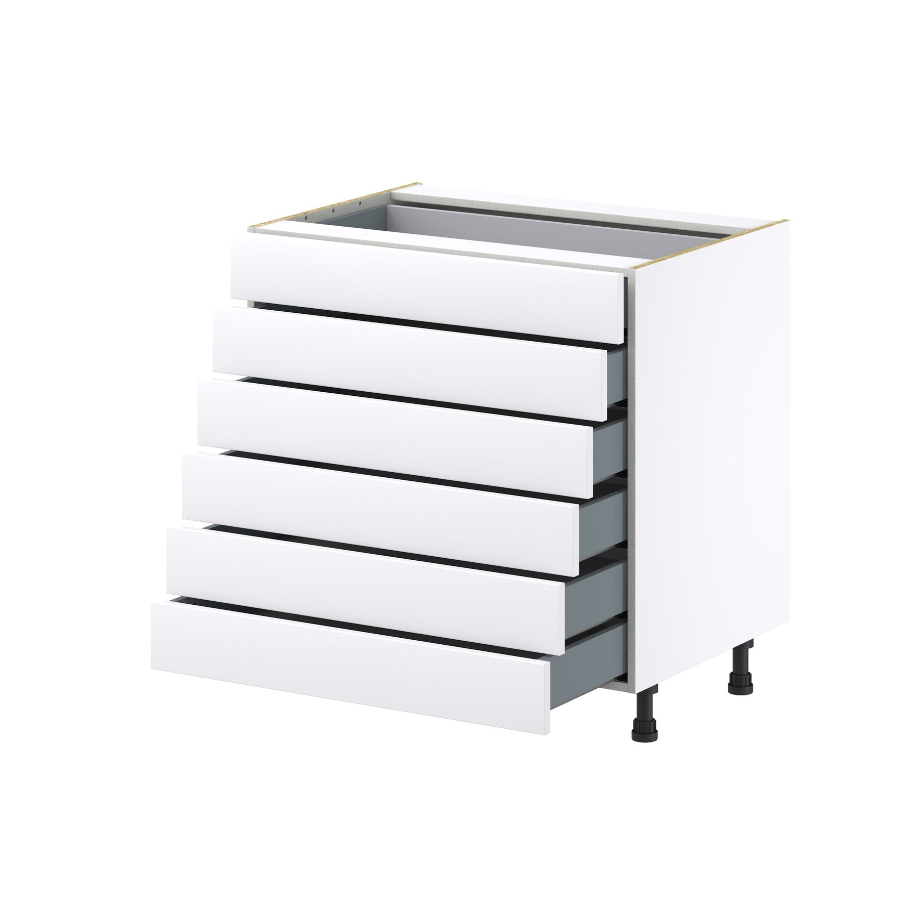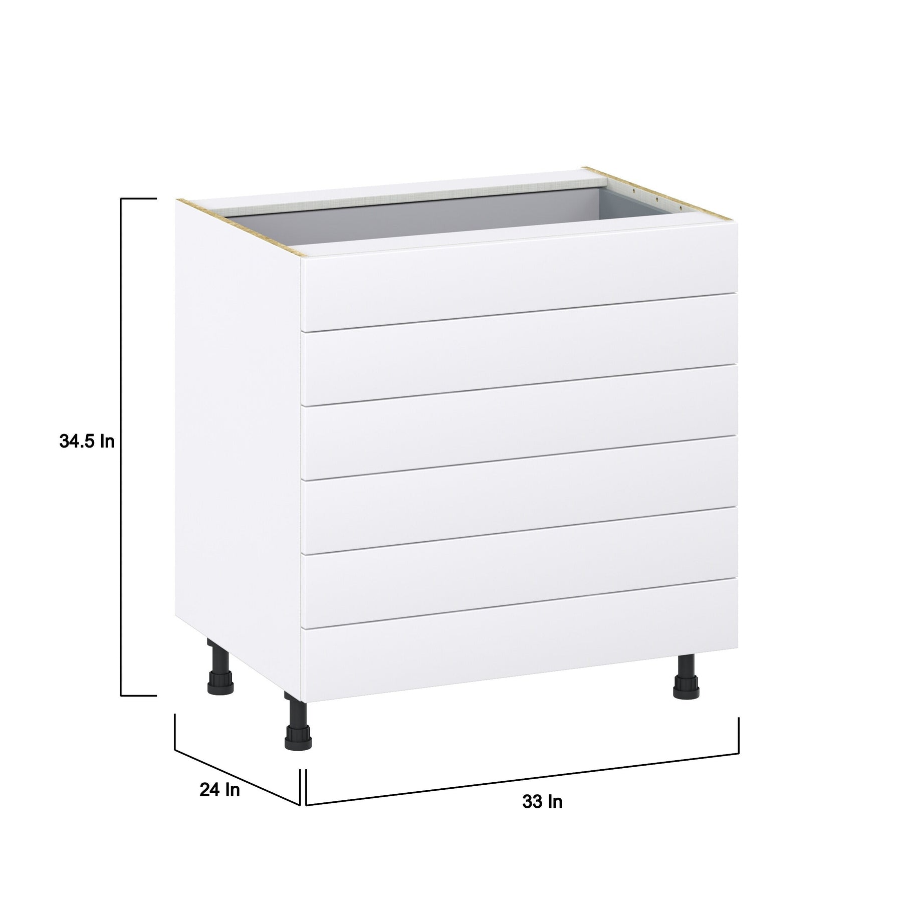 Hugo&Borg 33-in W x 34.5-in H x 24-in D Warm White 6-Drawer Base Fully Assembled Cabinet (Recessed Panel Style)