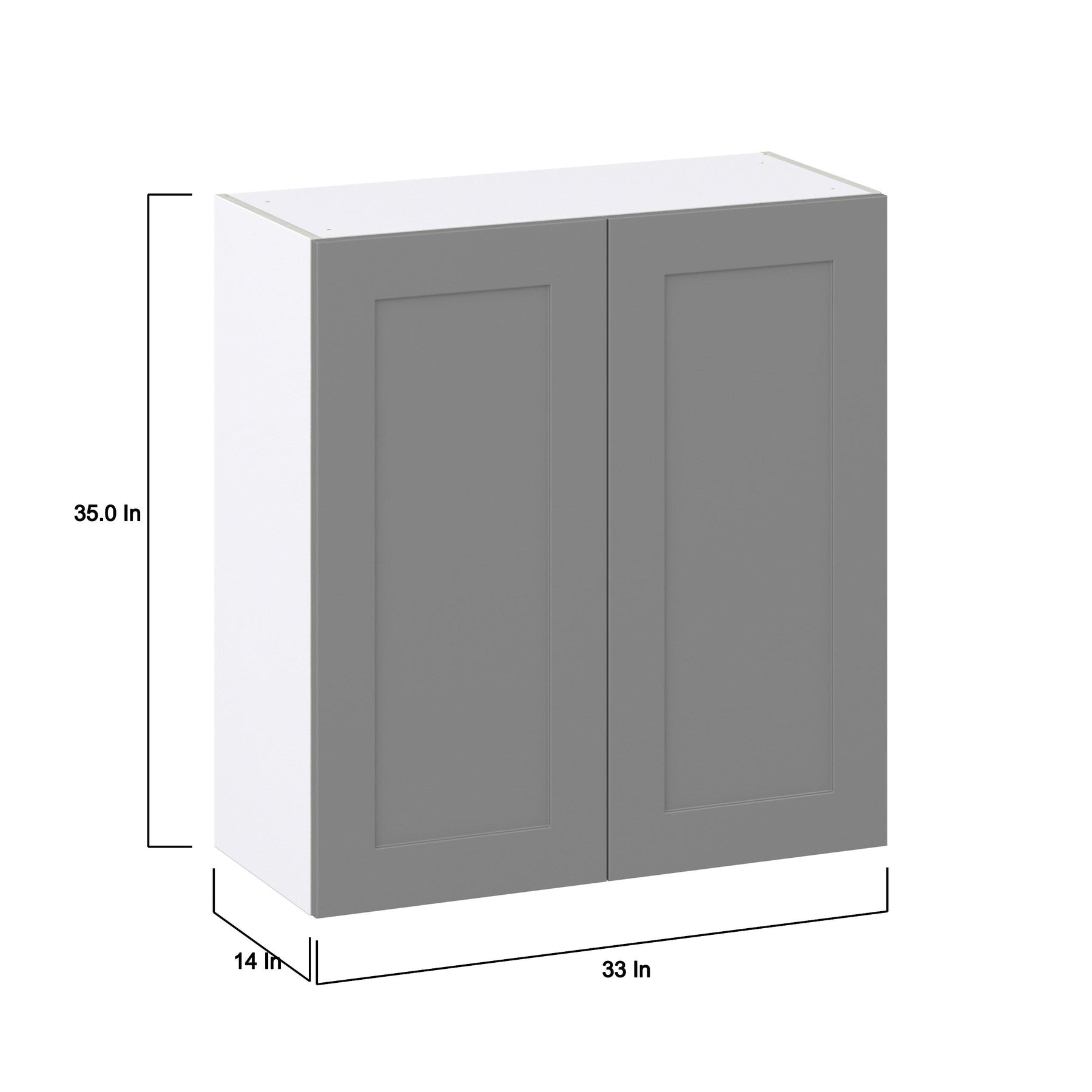 Hugo&Borg 33-in W x 35-in H x 14-in D Slate Gray Wall Fully Assembled Cabinet (Recessed Panel Shaker Door Style)