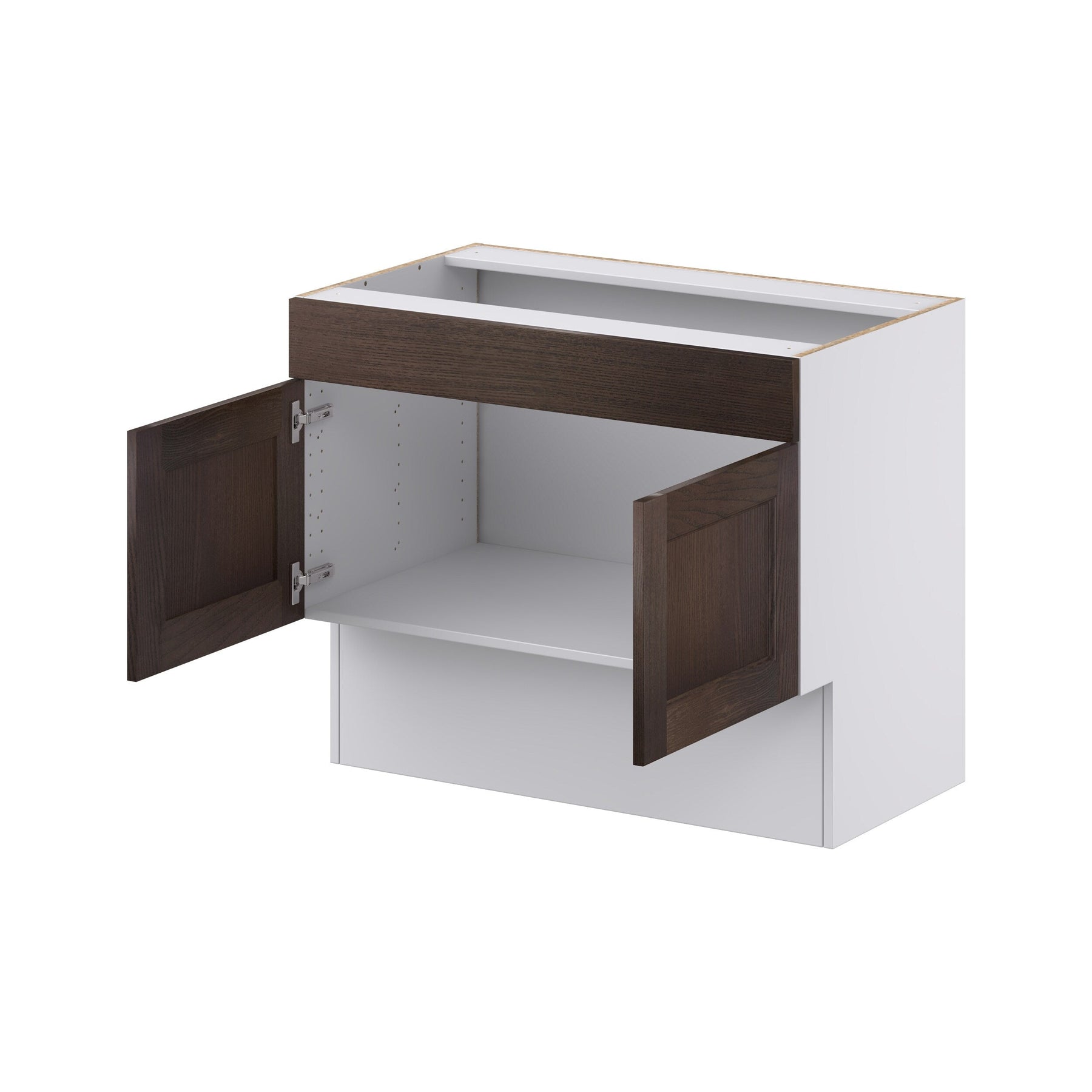 Elevate your storage solutions with the Hugo&Borg 36-Inch Wood Base Cabinet, featuring a timeless recessed panel Shaker design. Fully assembled for quick installation, this cabinet offers a sleek European frameless construction for maximum interior access, accompanied by a durable, stained finish that resists scratches and moisture.