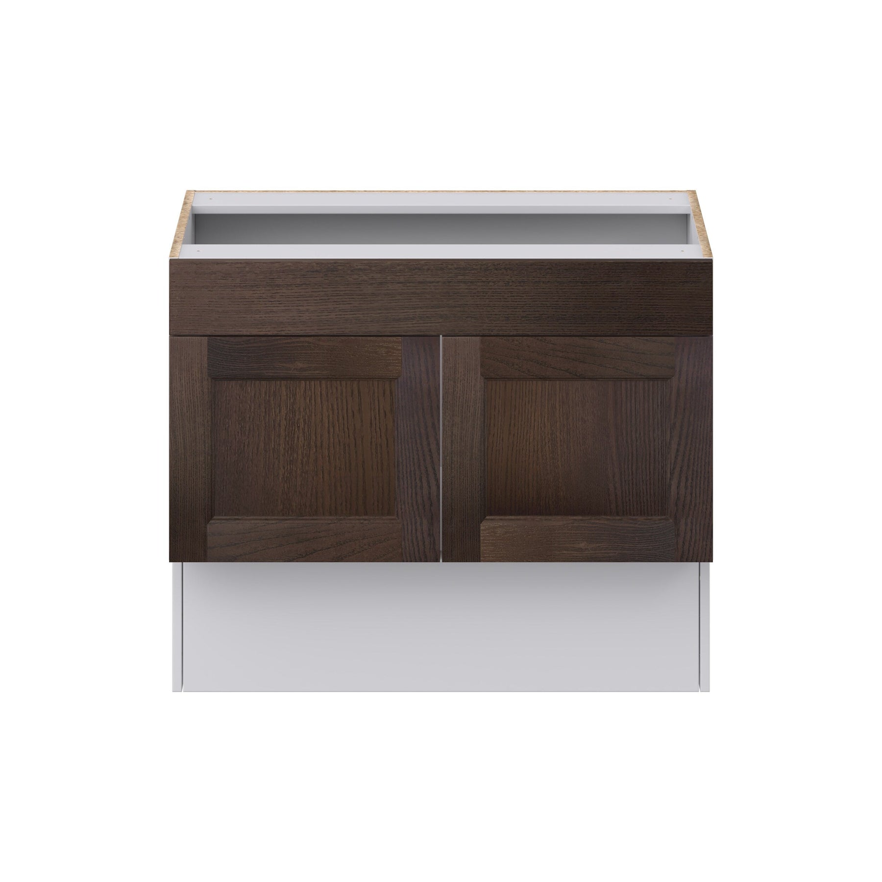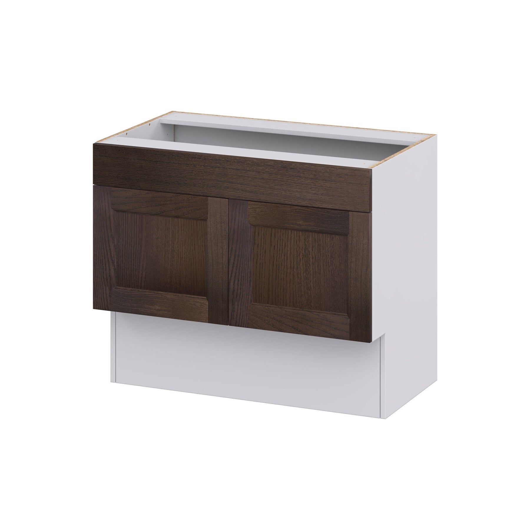 Infuse your kitchen with the understated sophistication of the Hugo&Borg Shaker-style wood base cabinet. Its hardwood finish, combined with a timeless recessed panel design, brings depth and warmth to any environment. Consider pairing it with pops of navy or emerald accessories to enhance its rich brown tones. This cabinet not only offers versatile storage but also embodies the seamless blend of form and function, essential for a refined yet practical lifestyle.