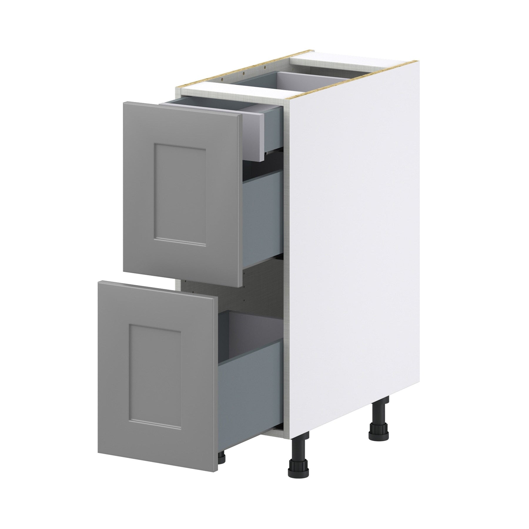 The Hugo&Borg Beaumont 3-Drawer Base Cabinet in Slate Gray combines versatile storage with sleek design. Featuring premium soft-close drawers, this fully assembled cabinet is crafted with a modern recessed panel style and hand-painted finish, perfect for any renovation or new home build. With robust construction and a stylish gray tone, it elevates kitchen or bathroom aesthetics while providing functional organization.