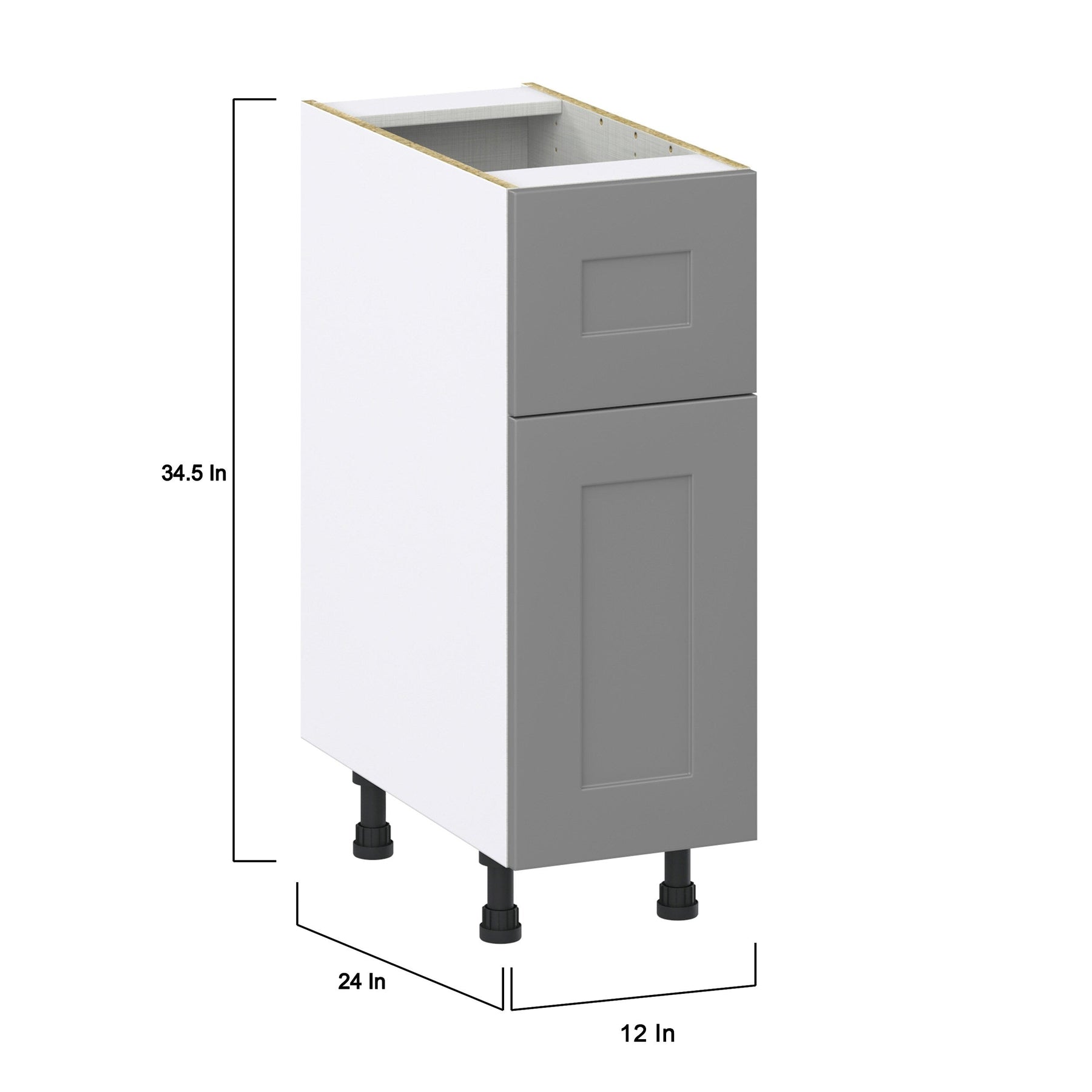 Hugo&Borg Beaumont 12-in W x 34.5-in H x 25-in D Slate Gray 1-Drawer Base Fully Assembled Cabinet (Recessed Panel Shaker Style)