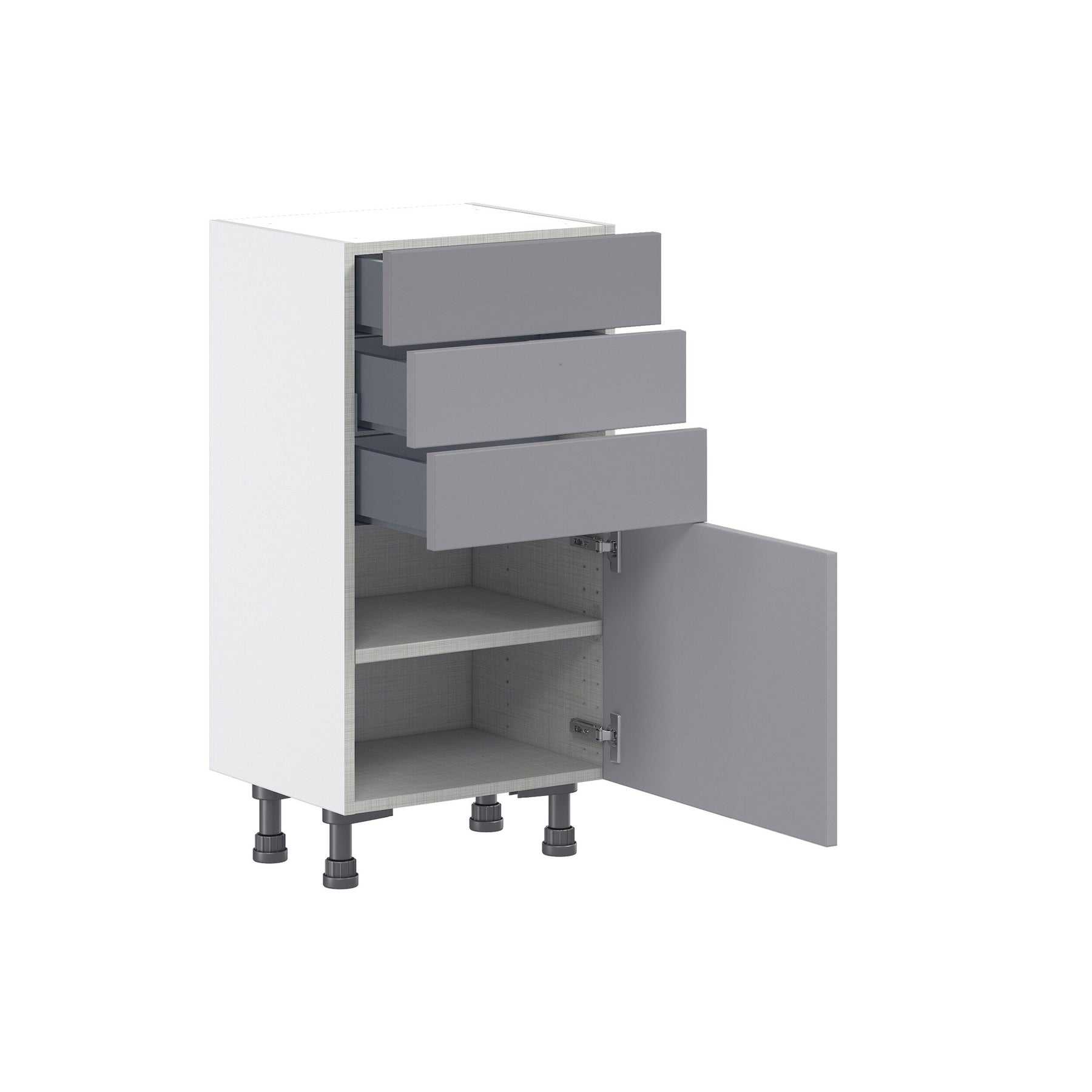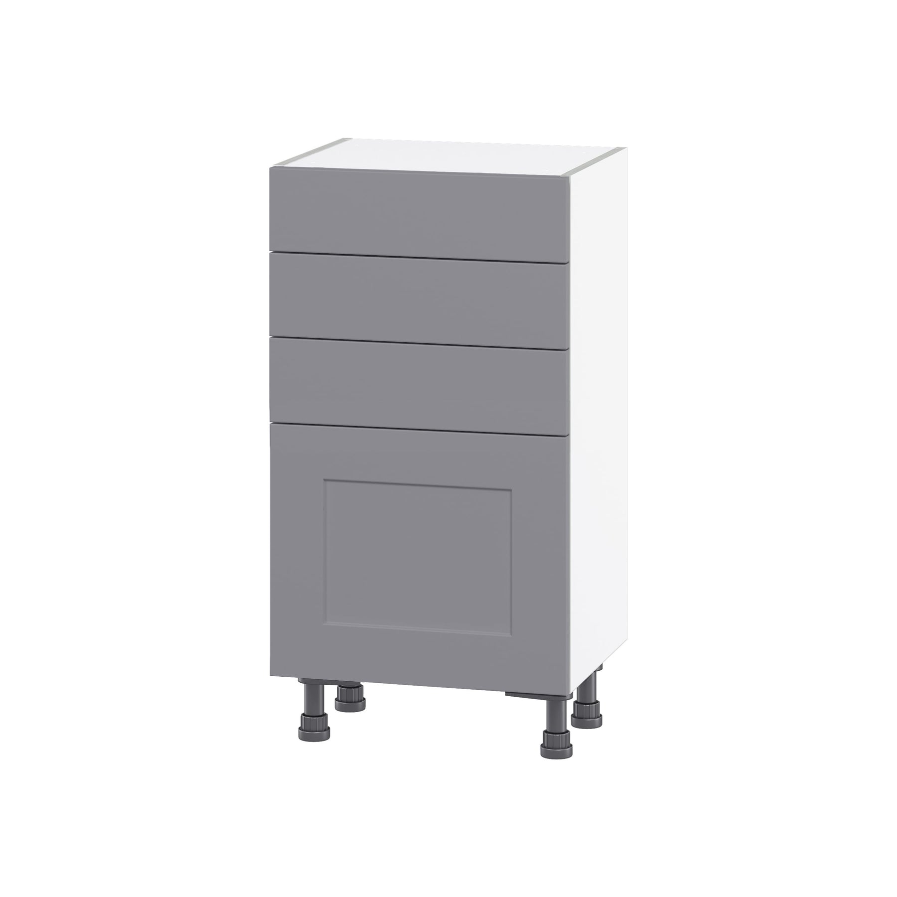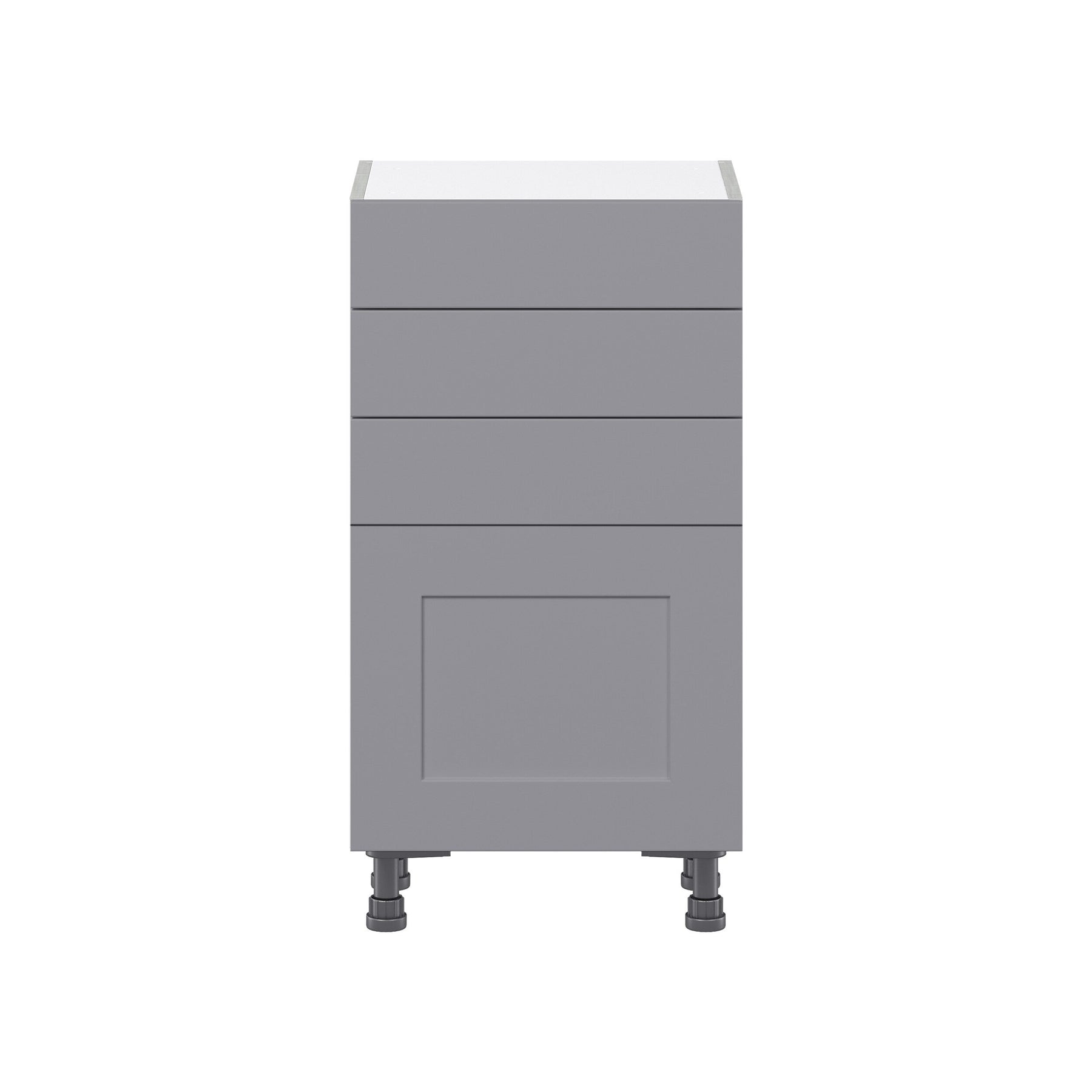 The Beaumont Shaker Base Cabinet by Hugo & Borg combines sleek design with practicality. Fully assembled and crafted in a sophisticated slate gray finish, this cabinet offers enhanced storage solutions with its modern linen interior and full-extension, soft-close drawers. Perfectly designed to fit into a variety of spaces, this cabinet promises durability and style.
