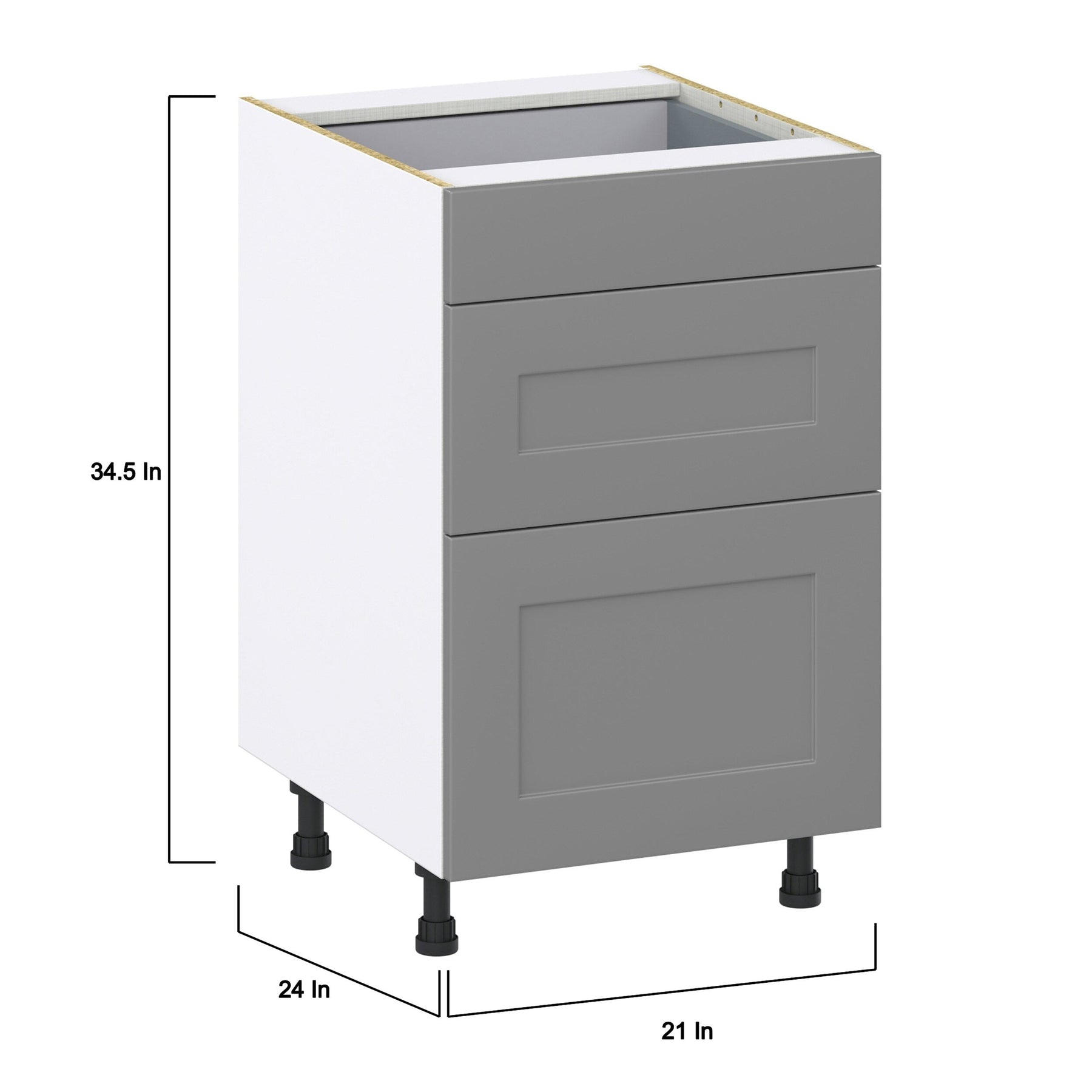 Hugo&Borg Beaumont 21-in W x 34.5-in H x 24-in D Slate Gray 3-Drawer Base Fully Assembled Cabinet (Recessed Panel Style)