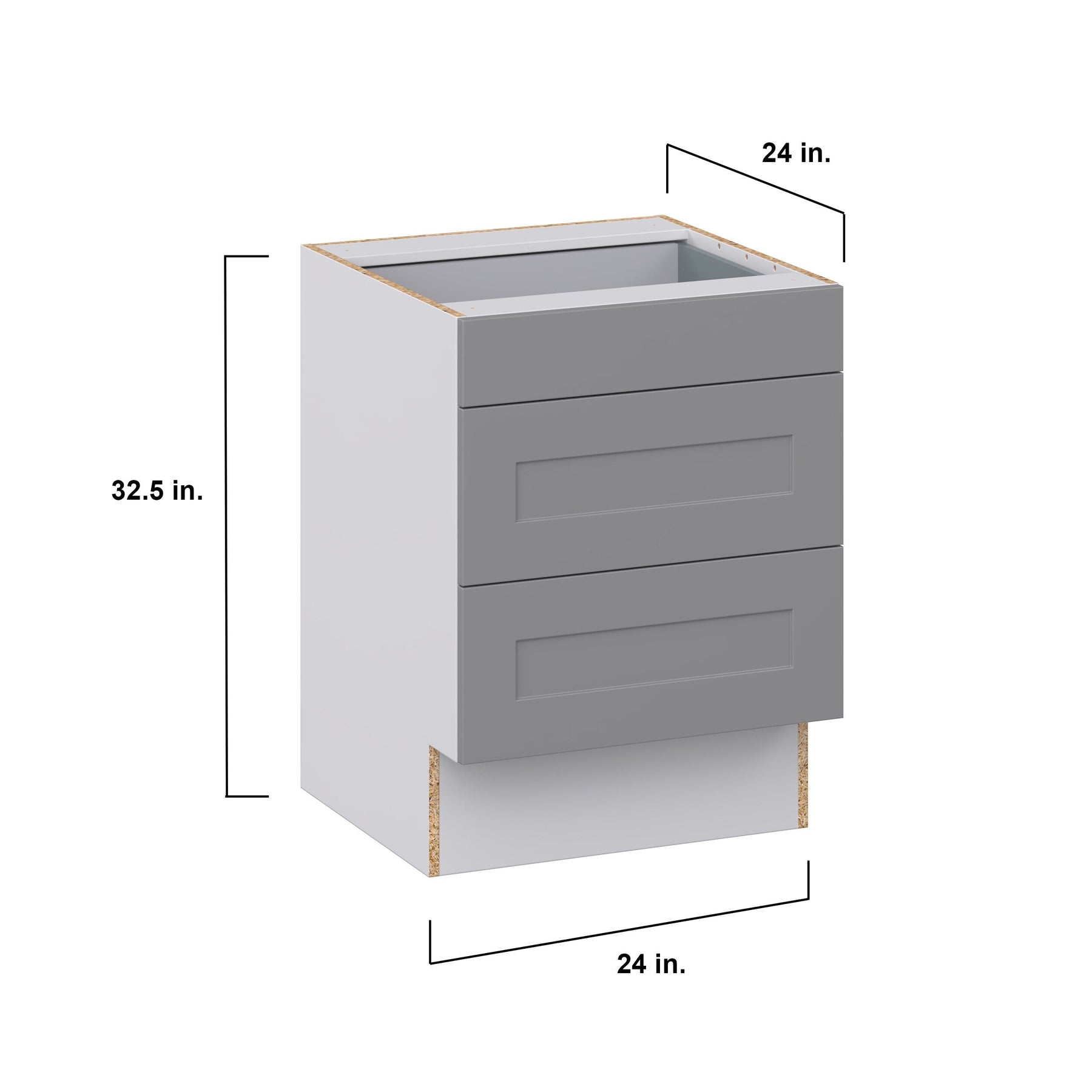Hugo&Borg Beaumont 24-in W x 32.5-in H x 24-in D Slate Gray 3-Drawer Base Fully Assembled Cabinet (Recessed Panel Style)