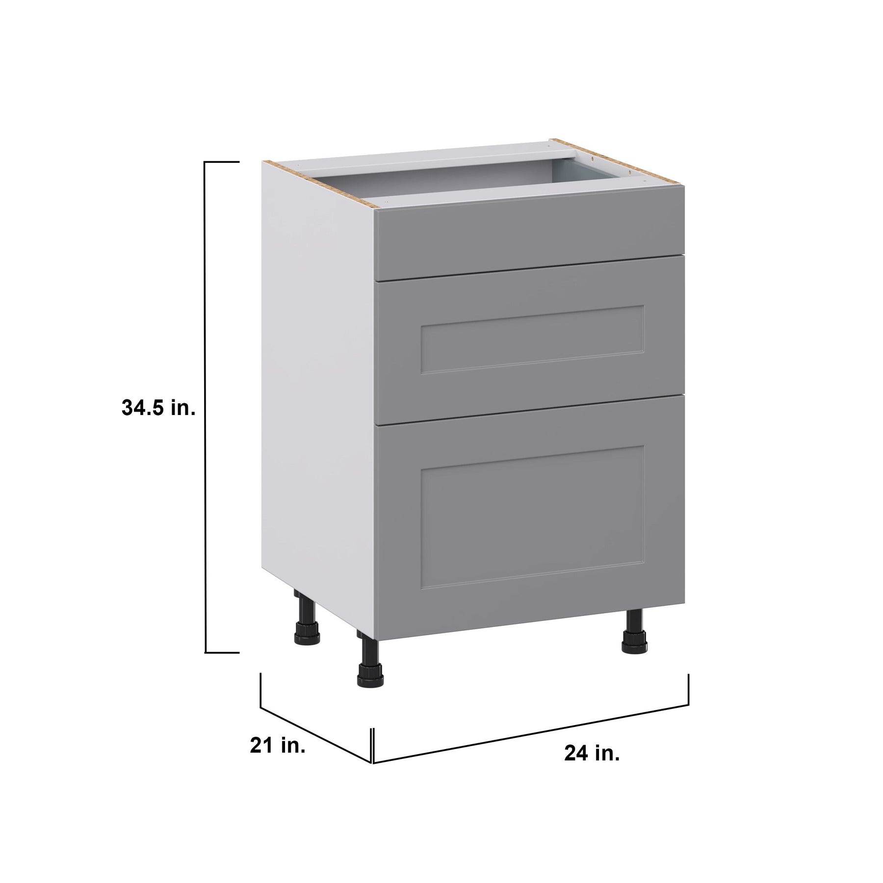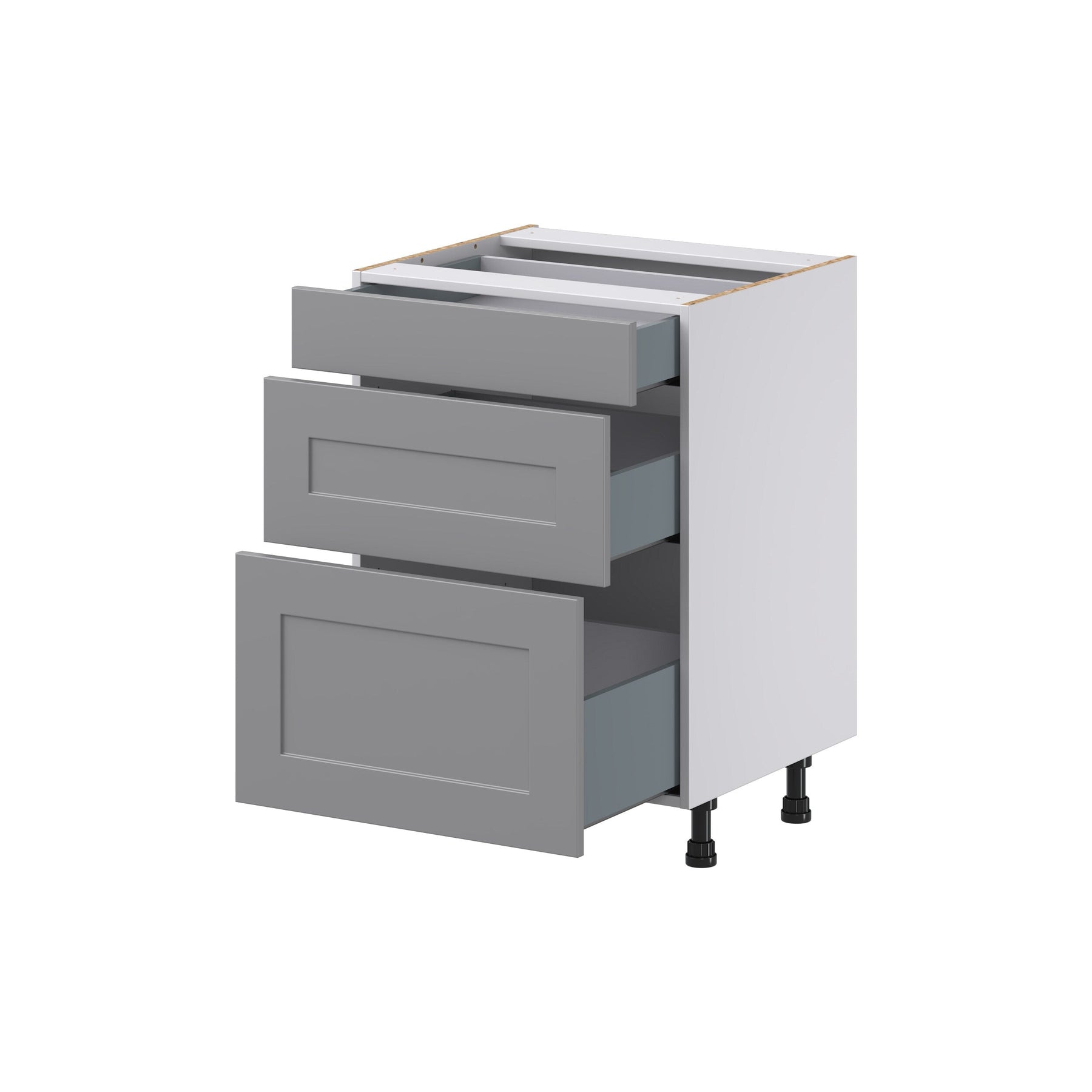 Hugo&Borg Beaumont 24-in W x 34.5-in H x 21-in D Slate Gray 3-Drawer Base Fully Assembled Cabinet (Recessed Panel Style)