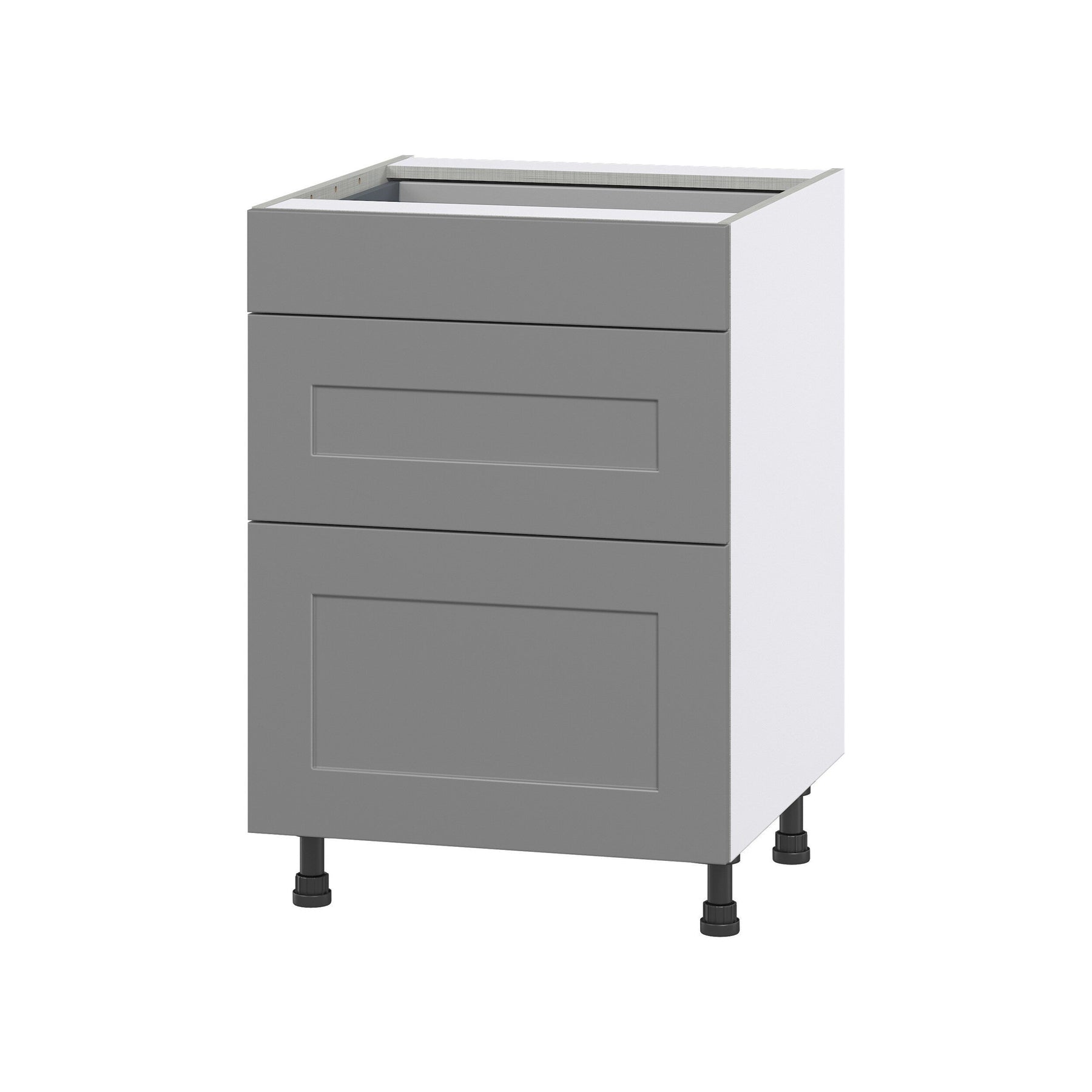 Hugo&Borg Beaumont 24-in W x 34.5-in H x 24-in D Slate Gray 3-Drawer Base Fully Assembled Cabinet