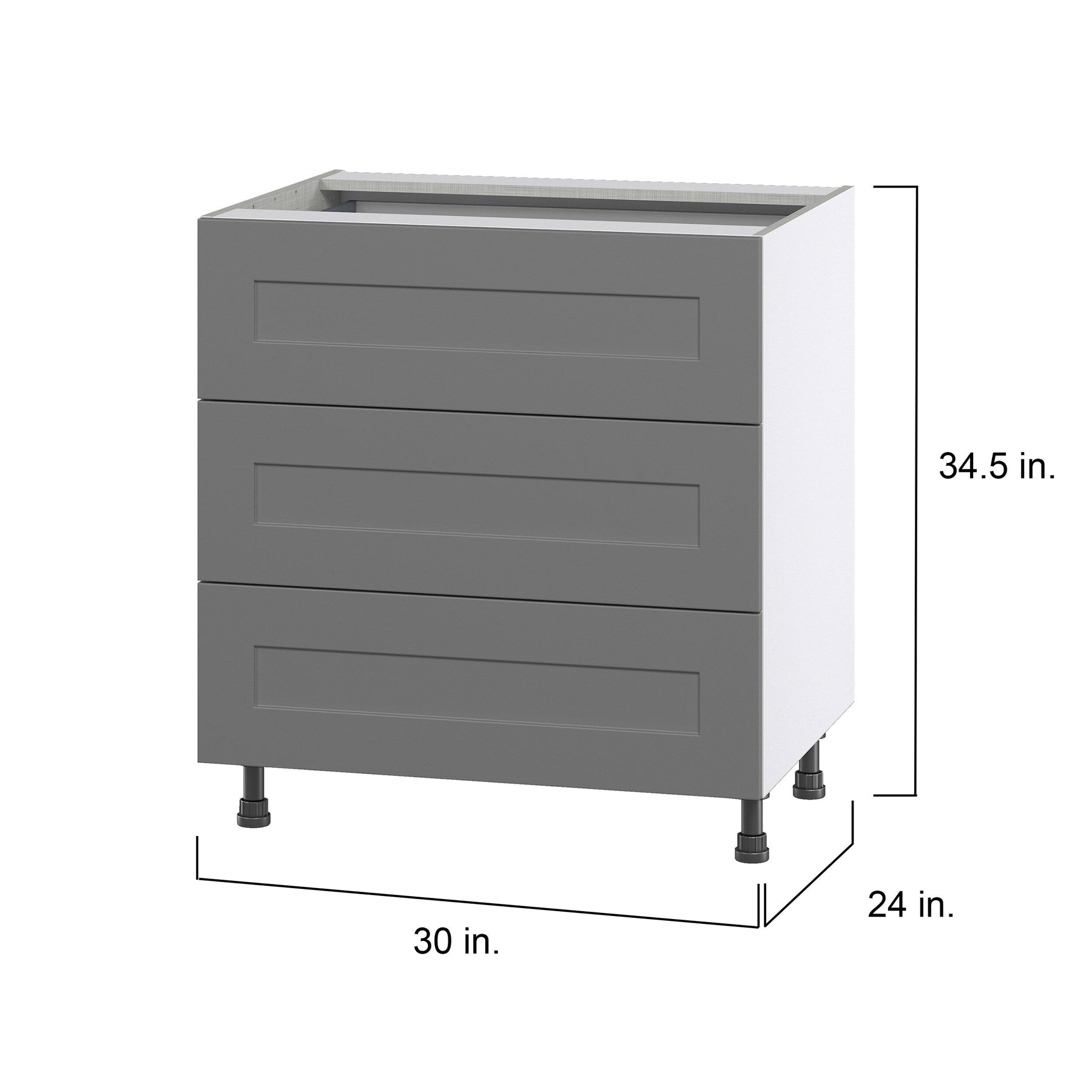 Hugo&Borg Beaumont 30-in W x 34.5-in H x 24-in D Slate Gray 3-Drawer Base Fully Assembled Cabinet