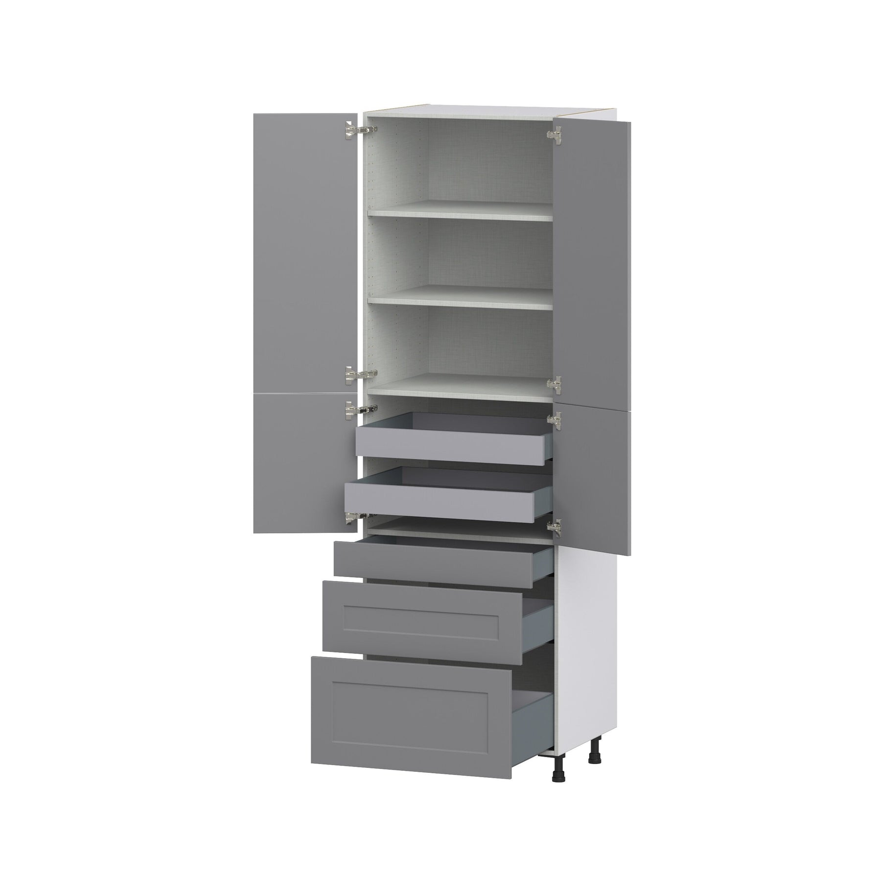 Hugo&Borg Beaumont 30-in W x 94.5-in H x 24-in D Slate Gray 5-Drawers Pantry Fully Assembled Cabinet (Recessed Panel Shaker Style)