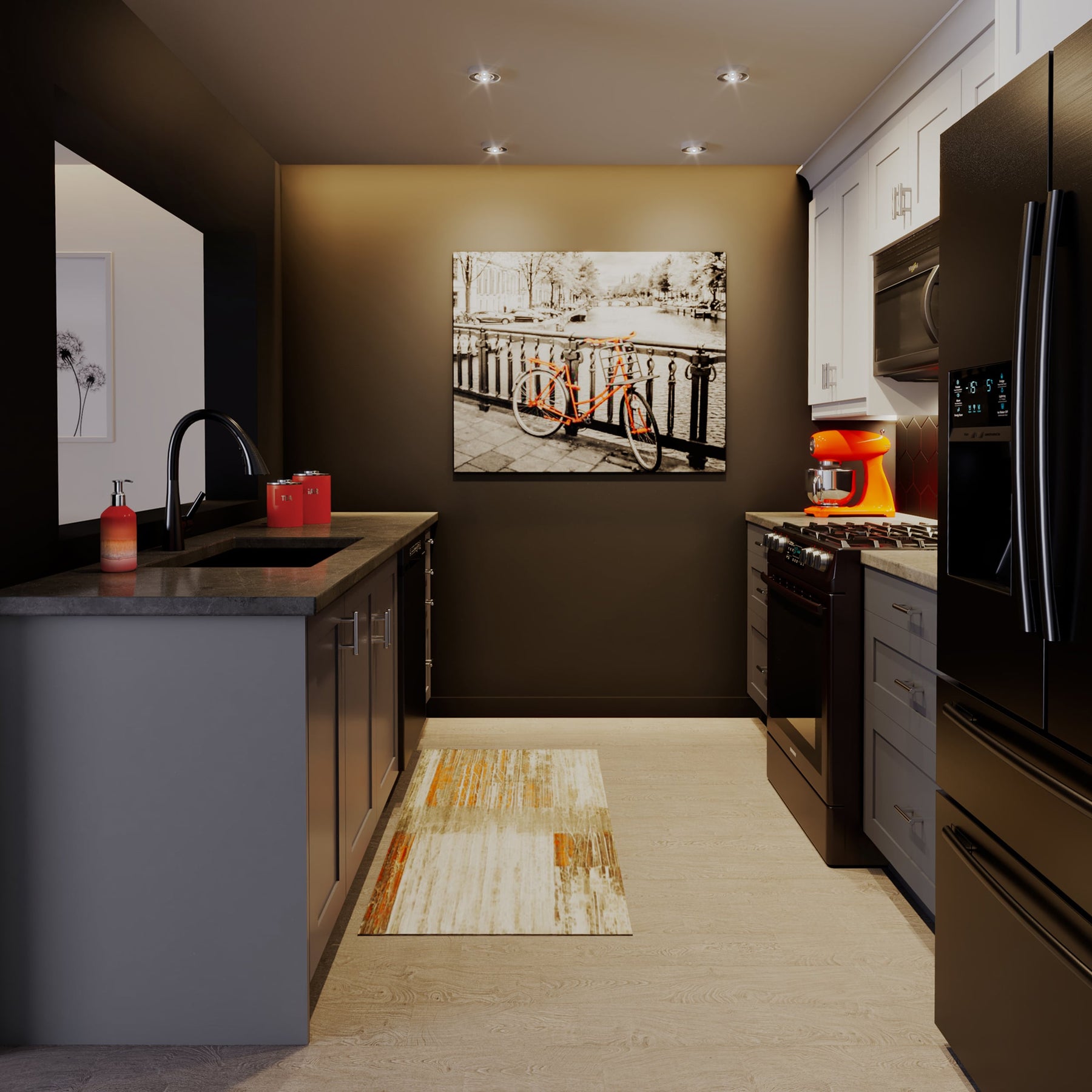 • Drawers: Full-extension soft-close mechanism supporting up to 75 lbs.