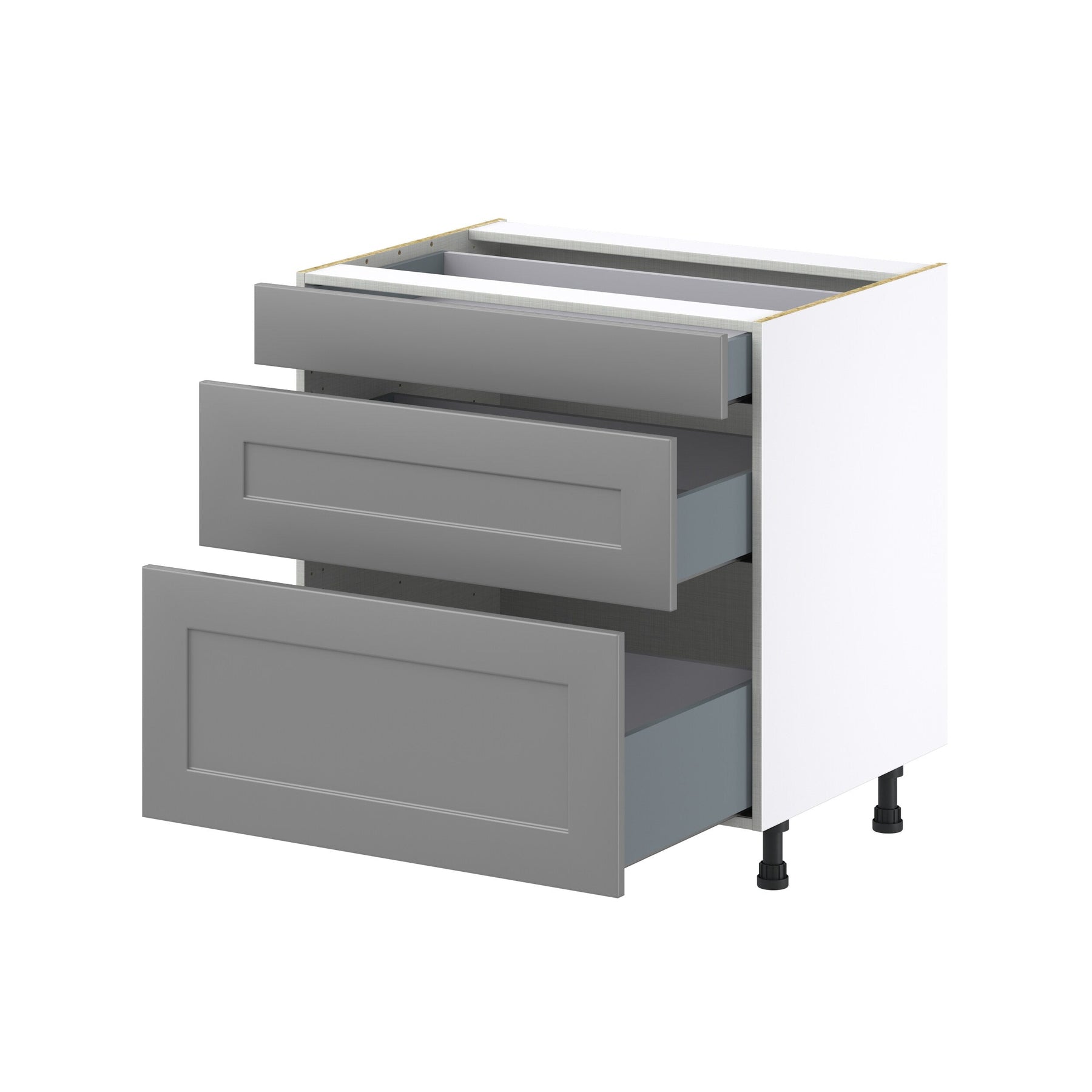 Hugo&Borg Beaumont 33-in W x 34.5-in H x 24-in D Slate Gray 3-Drawer Base Fully Assembled Cabinet (Recessed Panel Style)
