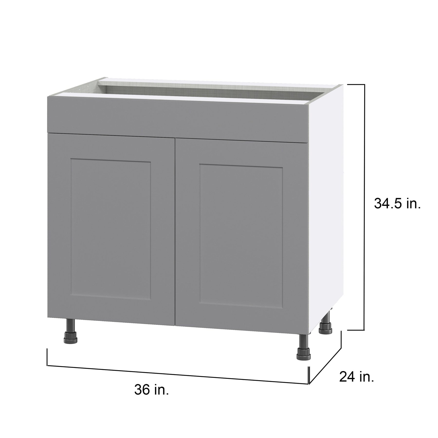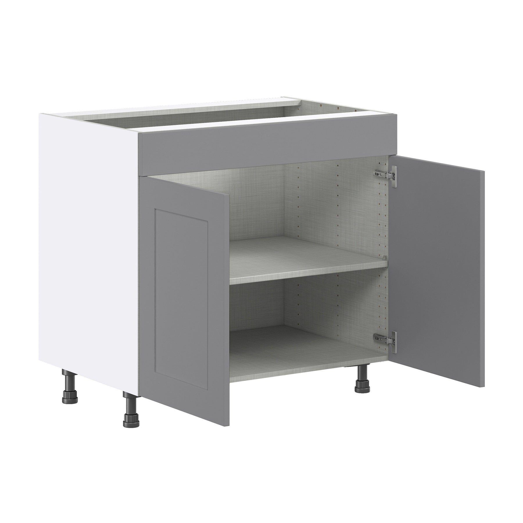 The Beaumont 36-inch Slate Gray Base Cabinet offers a blend of style and function. This fully assembled Shaker-style cabinet features premium soft-close doors and an elegant, modern design, making it an excellent addition to any professional or DIY project.