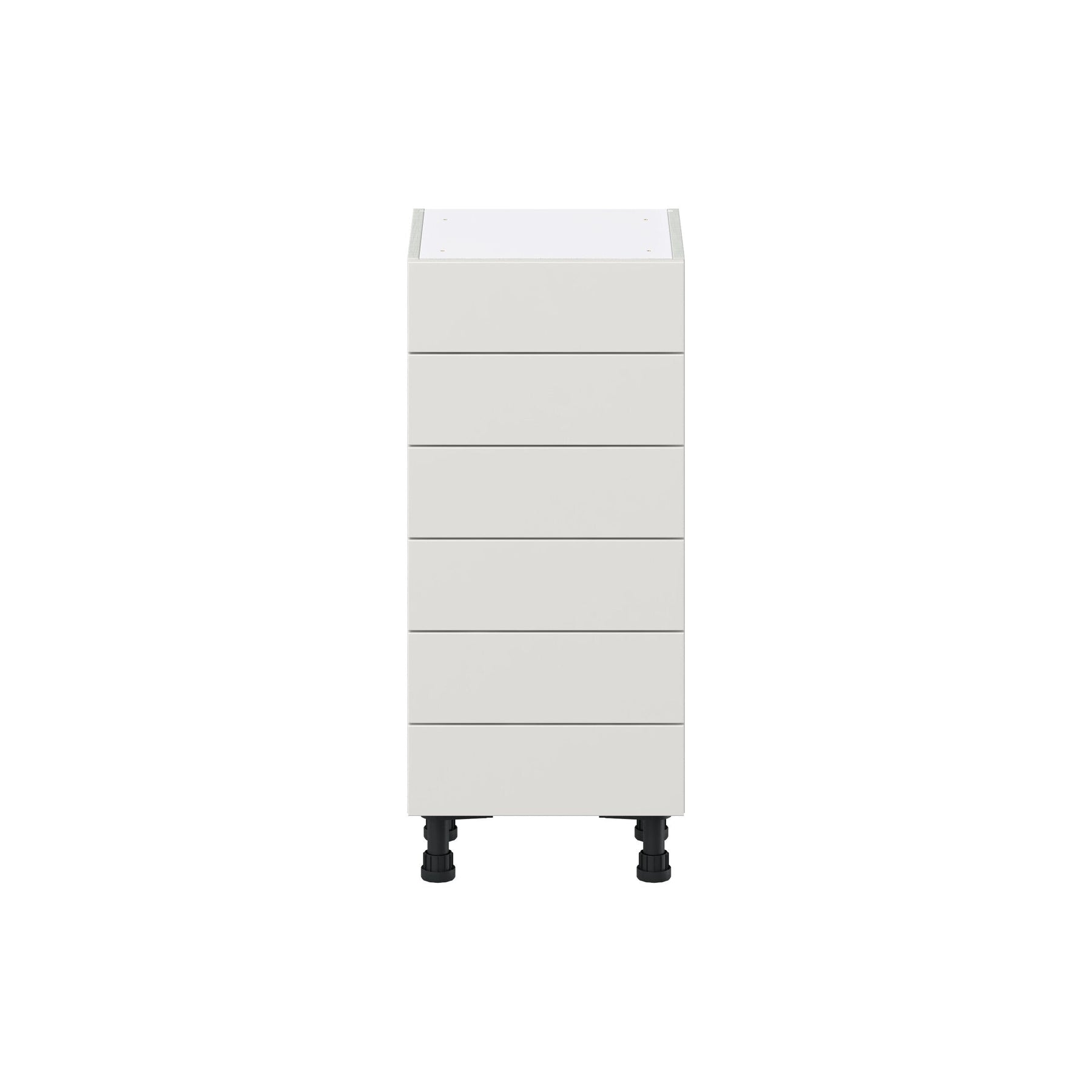 Elevate your kitchen's functionality and style with the Hugo&Borg Belcourt 6-Drawer Base Cabinet. This fully assembled cabinet boasts a soft gray finish and recessed panel style for a sleek, transitional look. Its European-style construction offers 20% more storage, providing an efficient and elegant solution for organizing your space.
