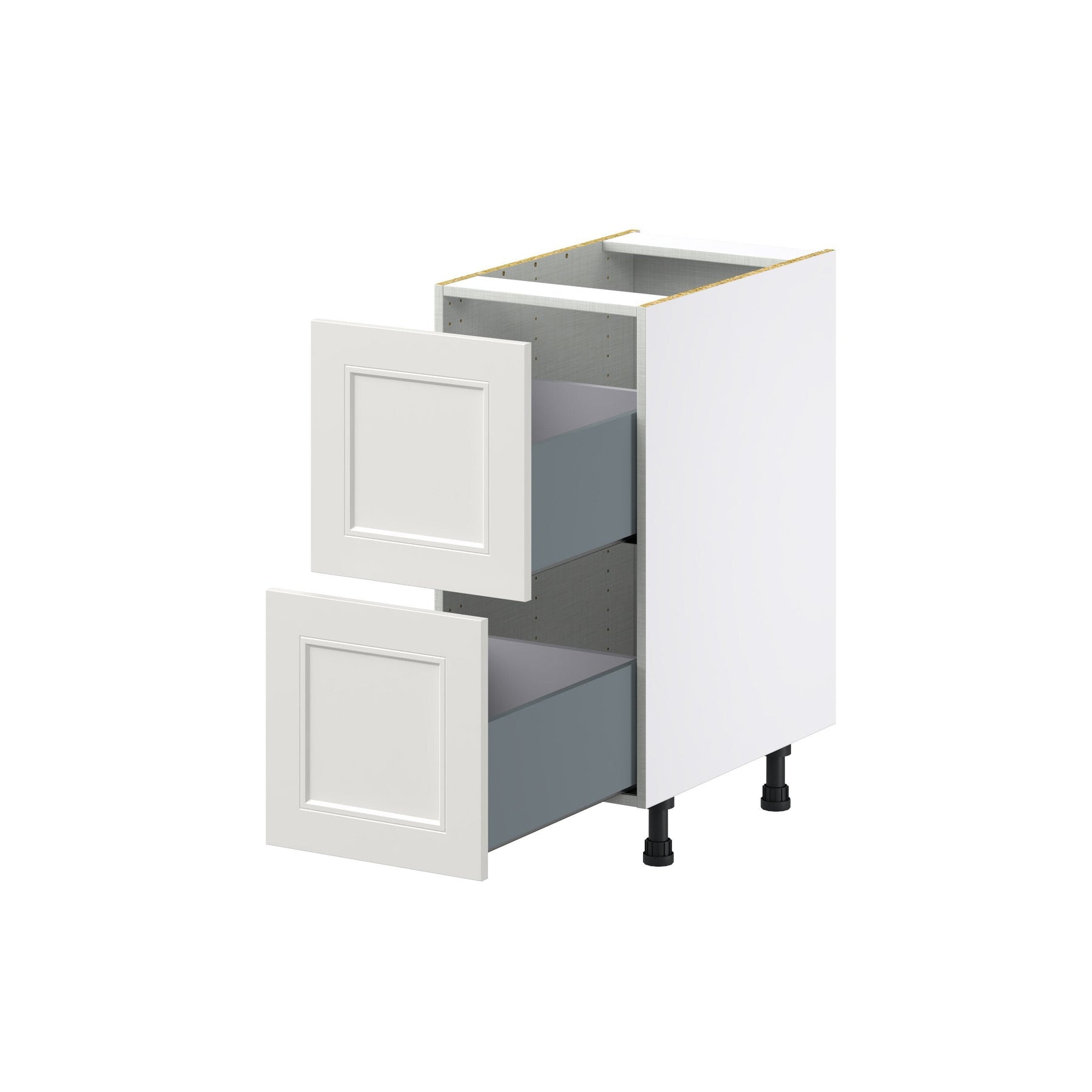 The Belcourt Gray Painted 2-Drawer Base Cabinet by Hugo&Borg offers a stylish and efficient storage solution with its elegant recessed panel design. Enjoy the benefits of European-style full access construction, providing 20% more storage in a superior durable cabinet that stands up to everyday use.