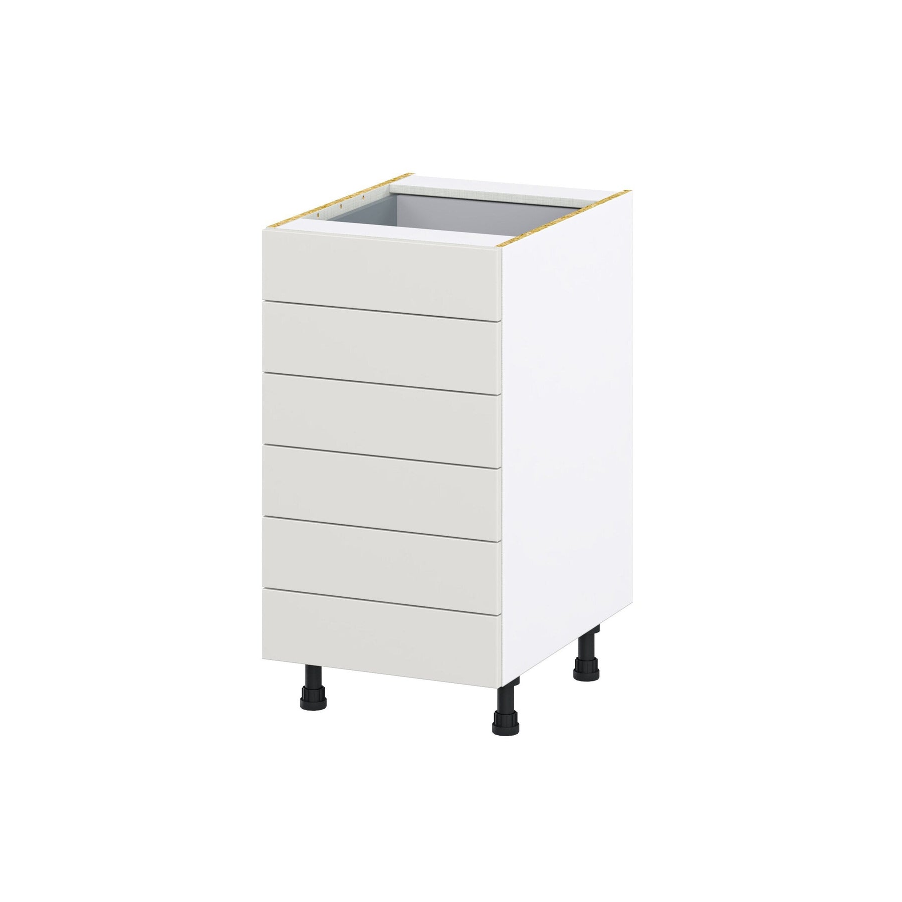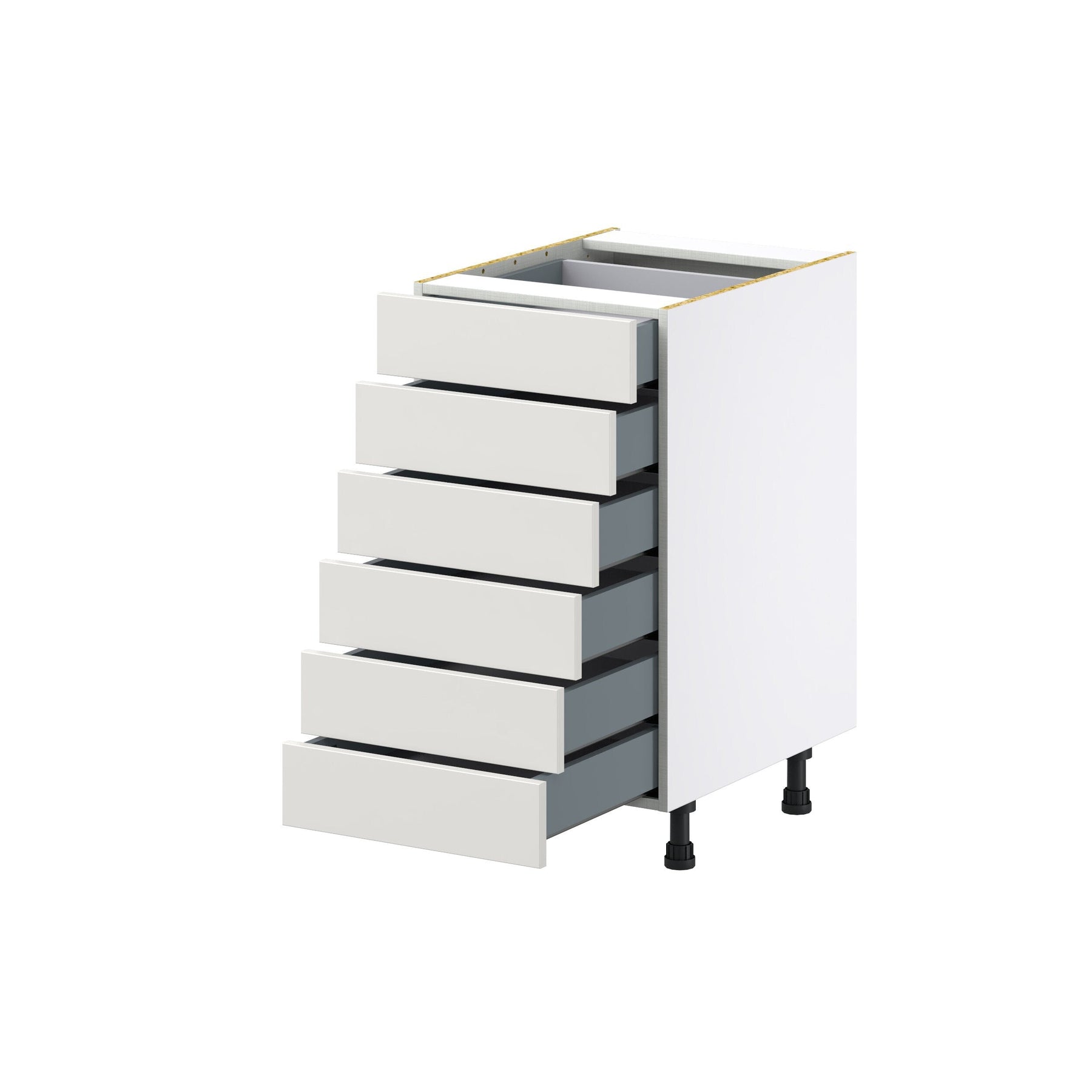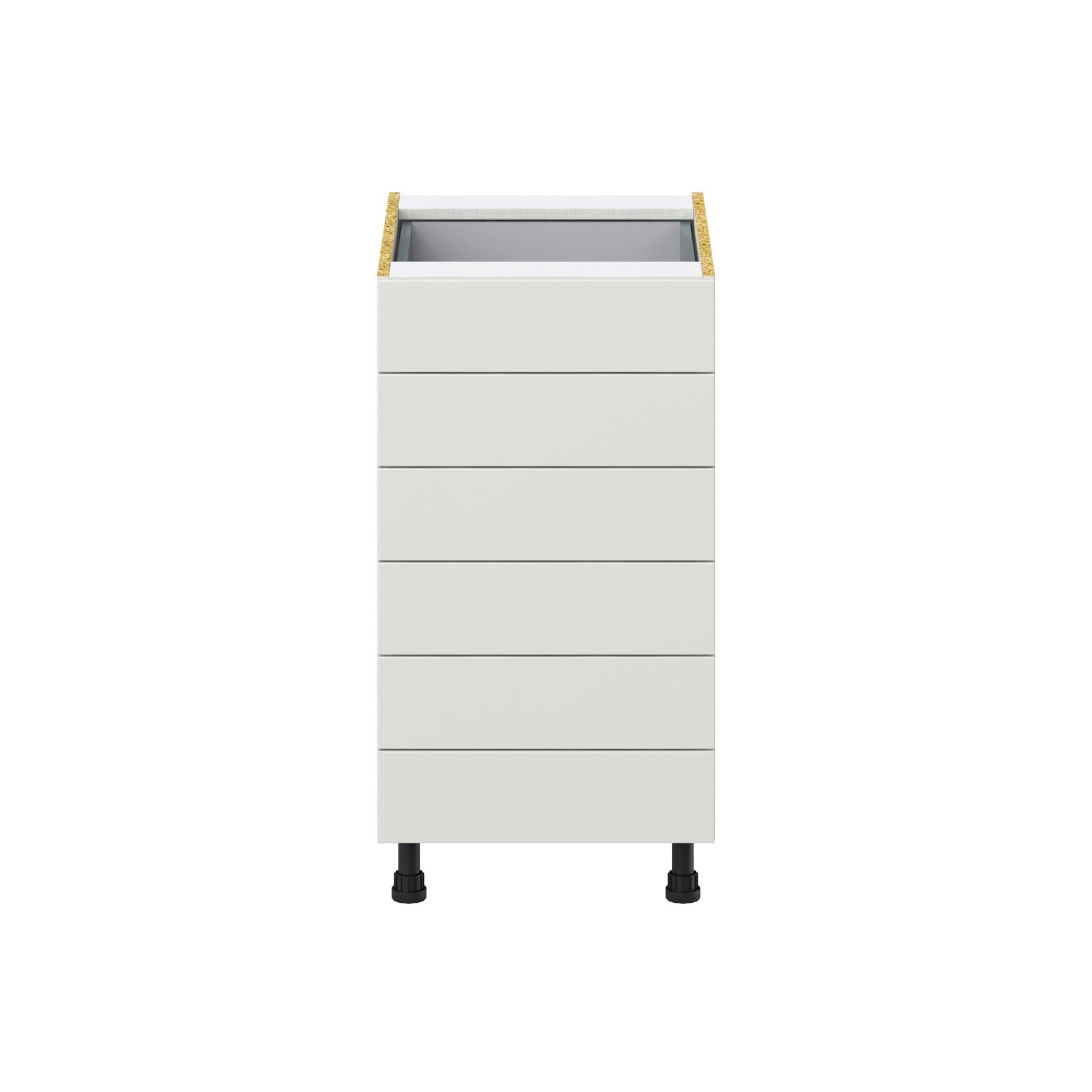 The Hugo&Borg Belcourt 6-Drawer Base Cabinet offers premium storage with a full-access European design that maximizes space. Its elegant gray finish and recessed panel style make it a perfect addition to modern kitchens. Designed for lasting durability, this cabinet combines aesthetics with high functionality, ideal for both professional remodelers and DIY enthusiasts.