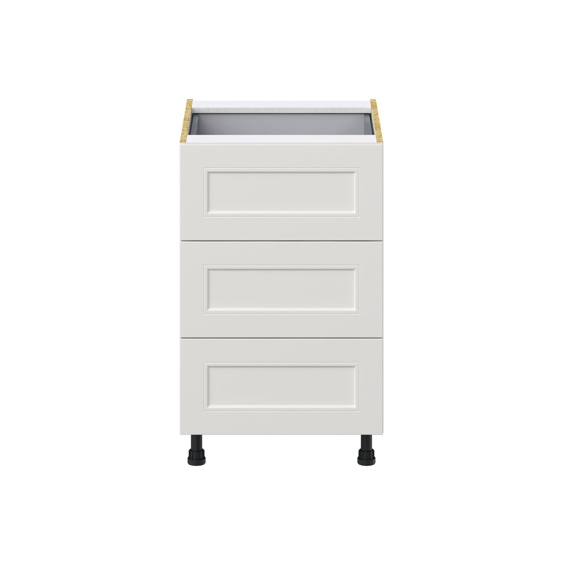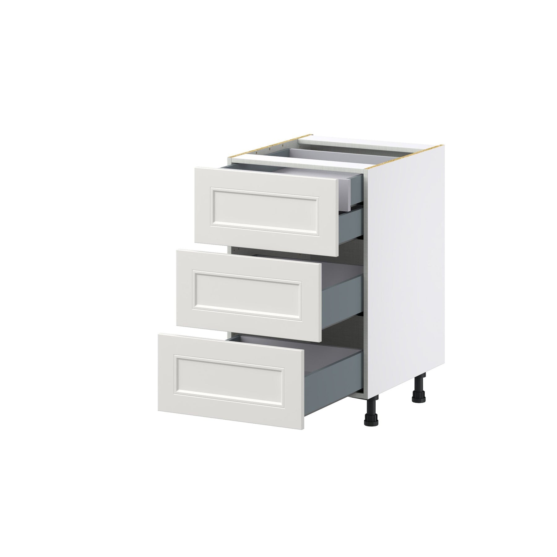 The Hugo&Borg Belcourt 4-Drawer Base Cabinet offers a sophisticated blend of style and function perfect for modern kitchen design. With its gray painted finish and recessed panel style, this cabinet brings a contemporary touch to any space while providing enhanced storage through a sleek, frameless design. Built with an 8-step hand-painted process, it's both stain-resistant and highly durable.