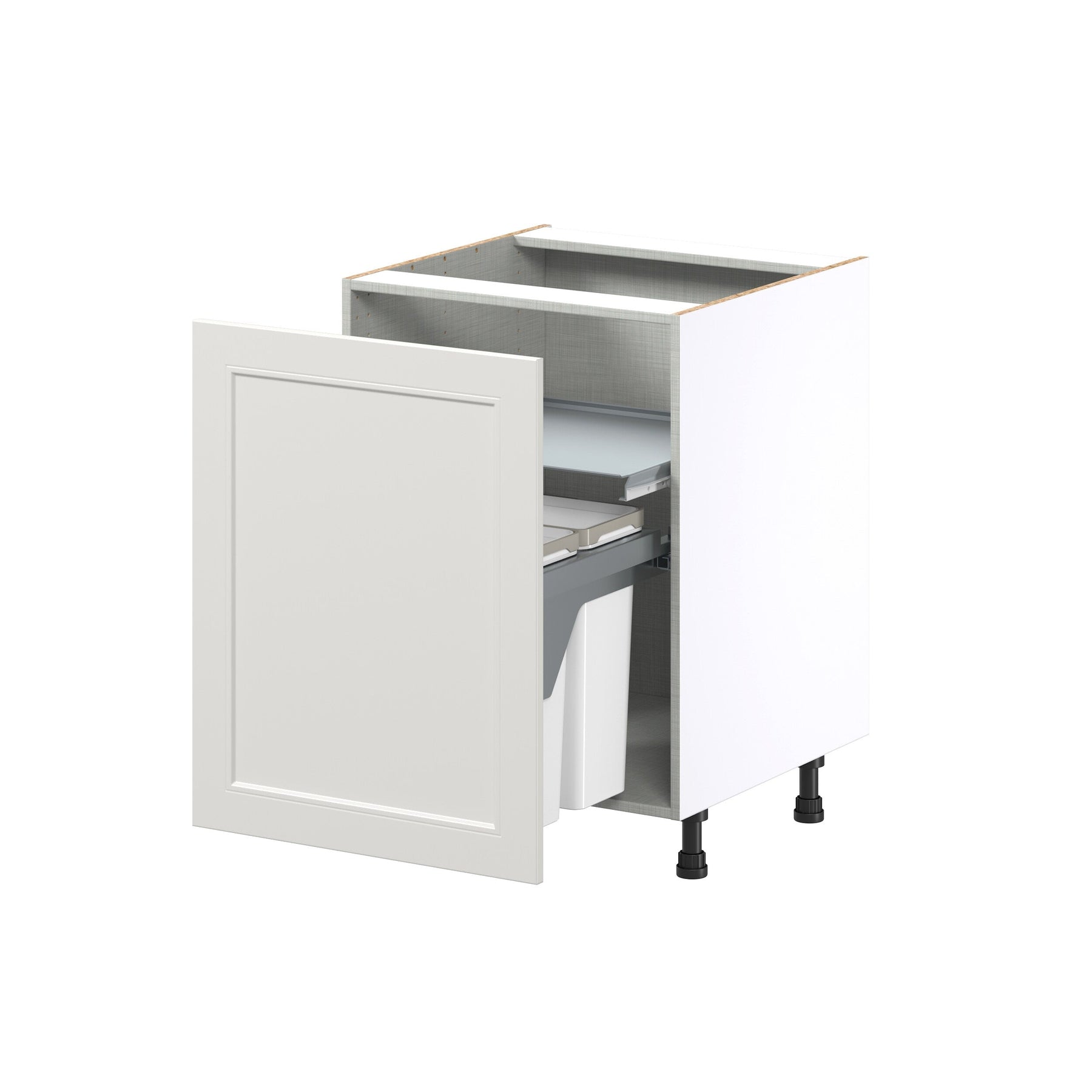 The Hugo&Borg Belcourt 24-inch gray cabinet combines European style with practical functionality. This fully assembled, recessed panel Shaker-style cabinet features a soft-close pull-out mechanism with high-capacity bins for recyclable and compost storage. Designed for durability, it offers a sleek storage solution for modern kitchen environments.